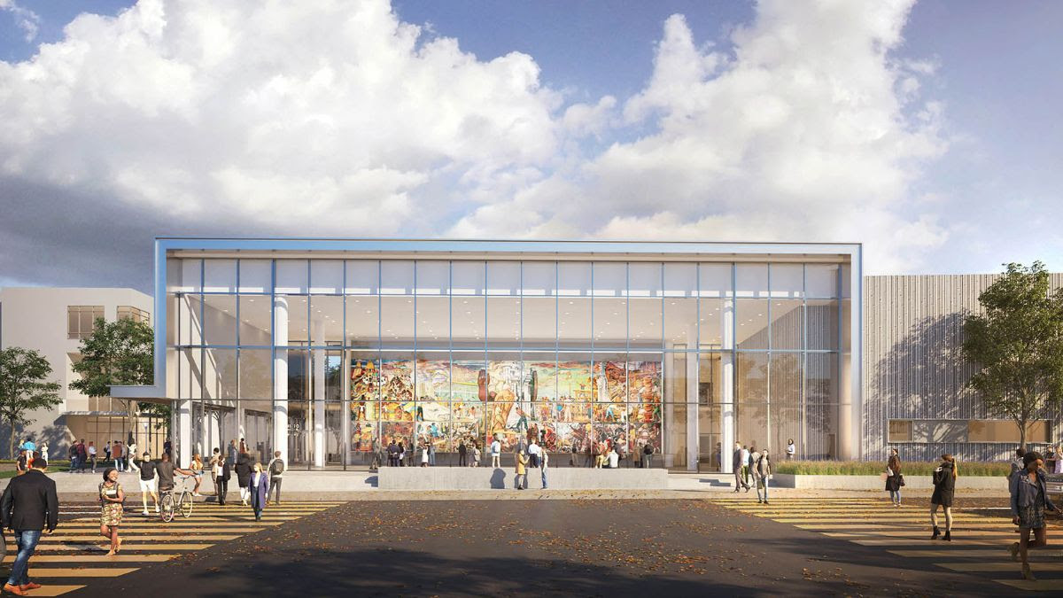 El mural de la Unidad Panamericana, pintado por Diego Rivera en 1940, es una vívida representación de la unidad en las Américas y ha experimentado un recorrido extraordinario hasta su nuevo hogar. Tras décadas en el vestíbulo de un teatro del City College de San Francisco y una reciente exposición en el Museo de Arte Moderno de San Francisco, el mural pronto se exhibirá en el vestíbulo acristalado del nuevo teatro. Este destacado entorno dará la bienvenida a usuarios del edificio, visitantes y transeúntes, permitiendo que la obra maestra inspire y conmueva a las generaciones futuras.