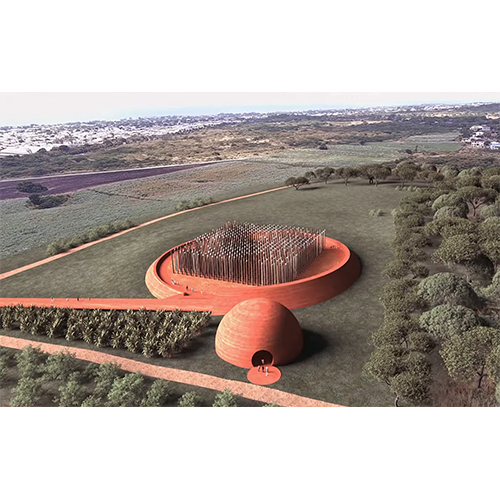 Como se lee en el anuncio: «La dualidad incrustada dentro de este paisaje etéreo se intensifica a medida que la arquitectura equilibra la tierra y el cielo, el agua y la tierra, los antepasados y los vivos, este mundo y el próximo».