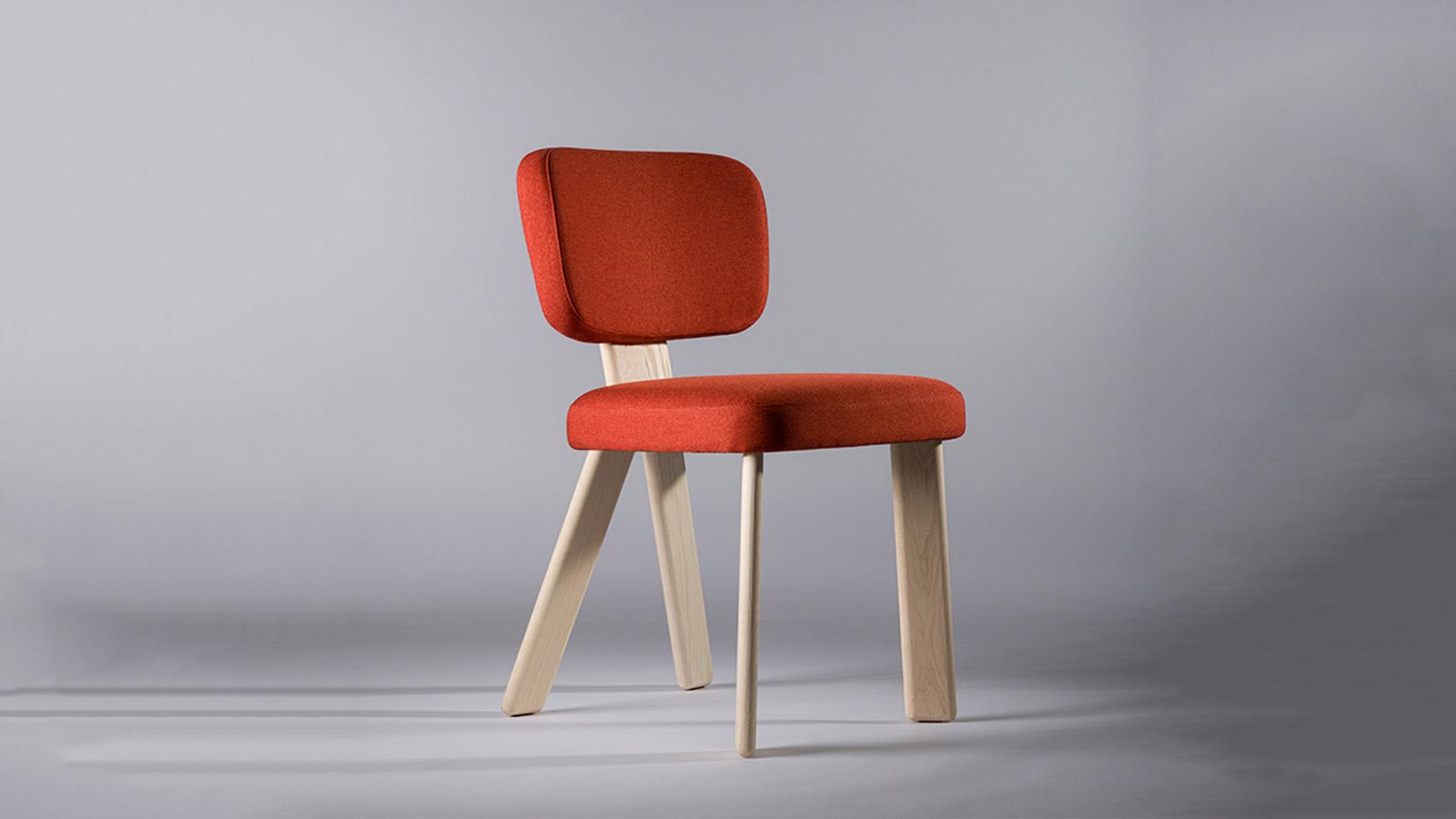 El diseño parte de la idea de una «Y invertida», un signo estructural y simbólico que define la estructura de madera de fresno. No se trata de un elemento gráfico, sino de una precisa elección constructiva: centra la forma, distribuye las cargas y enraíza la silla en el espacio. La geometría se pliega hacia abajo, creando equilibrio y estabilidad.