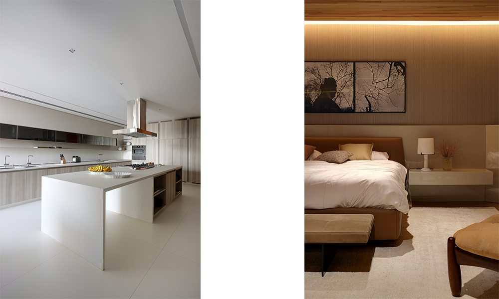 Las suites cuentan con pisos de Roble Europeo, paredes con empapelado de paja natural, techos de listones de madera y carpintería de hoja Tauari, a excepción de la Master Suite, que tiene carpintería lacada brillante. Los baños están revestidos de Ariostea, en piezas de gran formato para evitar costuras y disponen de lucernarios para la entrada de luz natural.