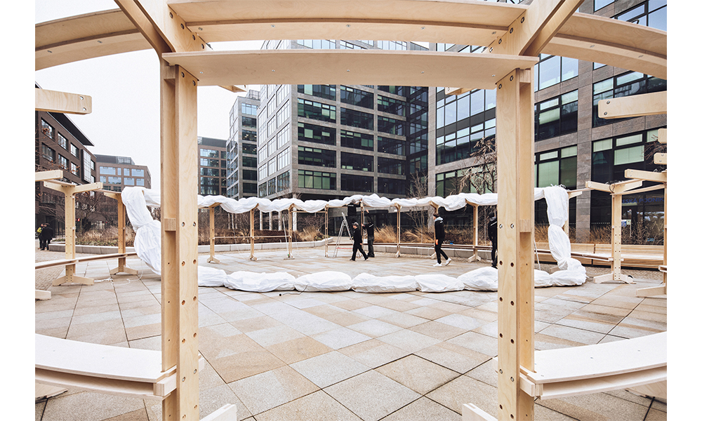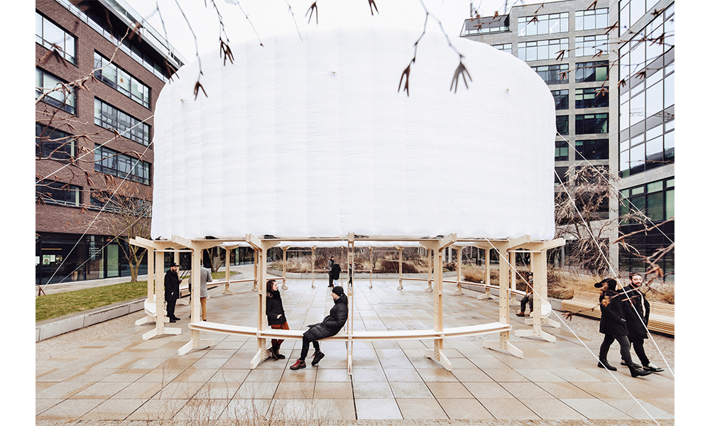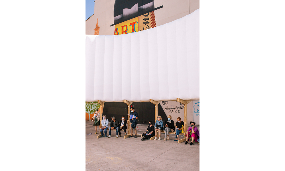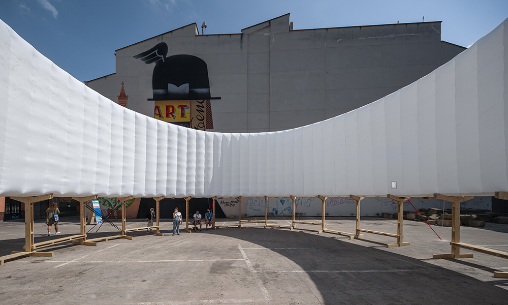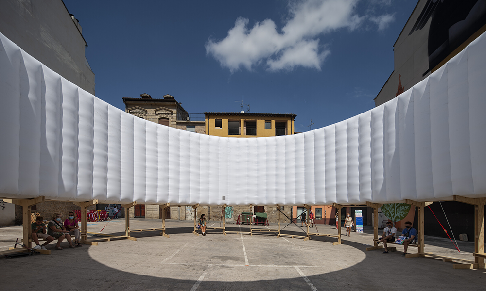 AIR SQUARE es un lugar transportable que activa espacios urbanos infrautilizados brindándoles un propósito y una vida pública vibrante. Responde a la necesidad de aliviar los problemas del cambio climático abordando las islas de calor sobreexpuestas y la falta de espacios públicos verdes y habitables. El anillo superior está diseñado como un gran sistema de sombra que mitiga, enfría y brinda refugio contra el calor. Por la noche proporciona iluminación a rincones urbanos oscuros y menos seguros.
