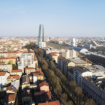 El proyecto de ACPV reinventa los espacios de oficinas de la empresa para que sean capaces de adaptarse a las necesidades cambiantes de las personas en el trabajo, al tiempo que revive el tejido urbano local con 6.320 metros cuadrados de nuevos espacios públicos verdes. La torre de oficinas de 144 metros de altura, llamada Torre Faro (torre del faro en italiano), conectará el centro histórico y la periferia de Milán reactivando un eje norte-sur que va desde el centro de la ciudad a través de Via Crema y Piazza Trento hasta llegar a ACPV.