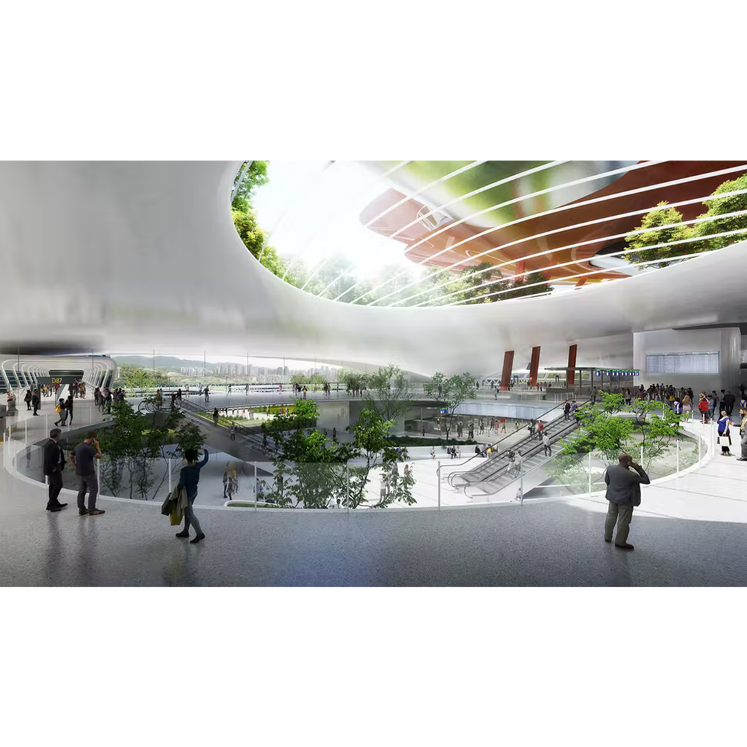 El sitio del proyecto es actualmente una terminal de carga de 66.000 metros cuadrados ubicada en la nueva área de Liangjiang de Chongqing. Con acceso al río Yangtze, el esquema de MAD Architects verá el desarrollo de una terminal internacional de cruceros y un complejo urbano de 65 000 metros cuadrados, que comprende un puerto de cruceros de 15 000 metros cuadrados y 50 000 metros cuadrados de espacio comercial.