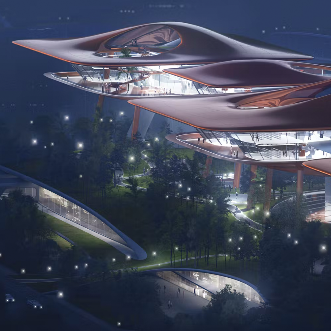 Según el comunicado de prensa de MAD, el equipo de diseño se inspiró en las grandes grúas pórtico naranjas que llenaban la terminal de carga. «Estas grúas pórtico se convirtieron en criaturas alienígenas vivientes que dieron una sensación de surrealismo», dijo el fundador y socio principal de MAD Architects, Ma Yansong . “Por lo tanto, el nuevo esquema no se trata solo de reflejar los colores industriales del pasado, sino también de respetar este surrealismo original. Hemos diseñado los edificios elevados como si fueran una ciudad futurista y libre, aparentemente llegando aquí desde otro lugar, y tal vez viajando a otro lugar una vez más algún día”.
