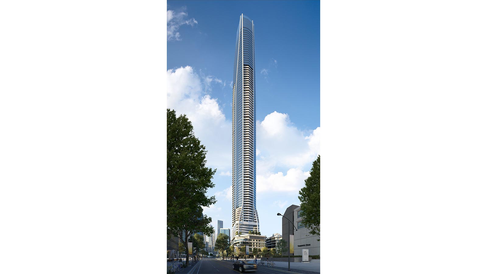 Esta comunidad vertical ofrecerá lo mejor de la vida moderna, con acabados y electrodomésticos de lujo, materiales de alta calidad y servicios de primera clase, incluido un restaurante en la última planta. Con balcones que se extienden hasta la planta 88 e impresionantes ventanas de suelo a techo, los residentes quedarán maravillados con las vistas sin obstáculos del lago Ontario y una experiencia inmersiva del horizonte de Toronto como ninguna otra.