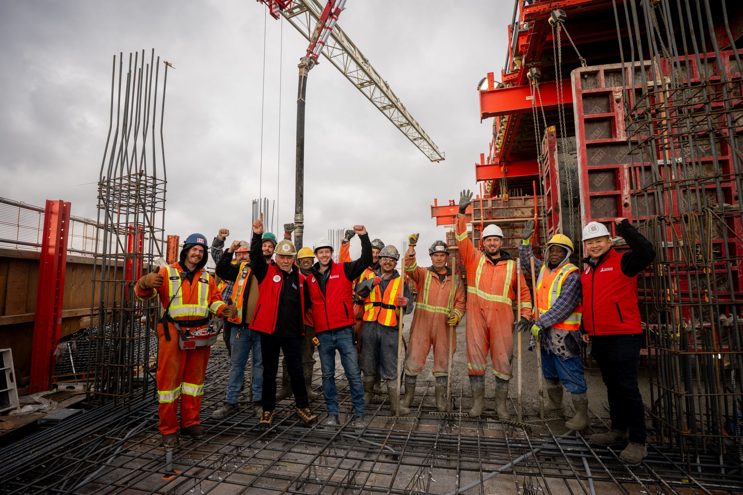 Pinnacle SkyTower ya es un hito en el paisaje urbano de Toronto, ya que su piso más alto estará a la altura del nivel de observación principal de la Torre CN. El equipo de Pinnacle se reunió para celebrar este hito con un ceremonial vertido de cemento en el piso 100 el viernes 21 de noviembre de 2025.