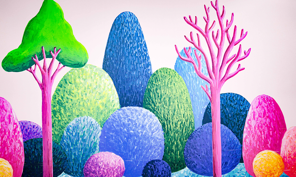 Recientemente finalizaron una importante instalación de Nicolas Party,  «Trees For Children», 2021, en Children’s Hospital Los Angeles (CHLA) . Party creó un extenso mural para el corredor de 207 pies que conduce al Departamento de Operaciones de CHLA. La instalación transforma significativamente este pasillo largo ya menudo aterrador que se atraviesa constantemente. En lugar de centrarse en las paredes blancas ominosas y la iluminación severa, los que pasan quedarán hipnotizados por el trabajo vibrante y poético del artista.