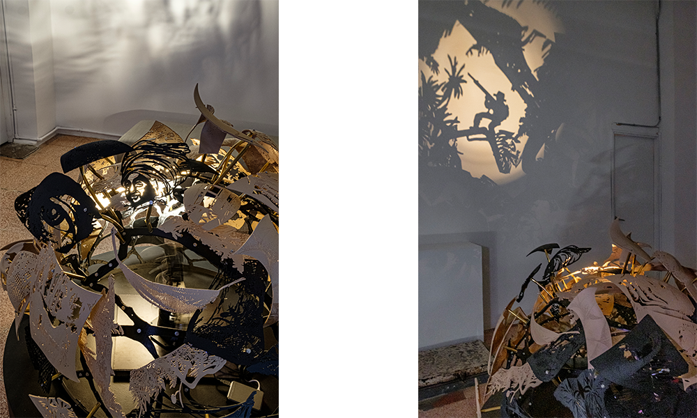 La visión del monte es una exposición compuesta de dibujos a lápiz, fotografías y una escultura de luz mecatrónica que simula la luz dentro de un bosque tropical. Esta obra está inspirada en fincas de cacao en Esmeraldas y conversaciones con locales sobre mitos, tradición oral y el folclor de la región. La visión del monte es la primera exposición individual del artista ecuatoriano-alemán Simon Speiser en Guayaquil, presentado por la Fundación Eacheve.