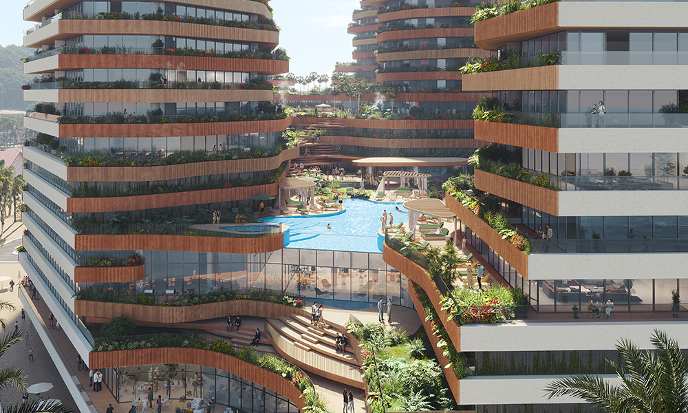 Con los balcones a la sombra, torres diseñadas para mejorar la ventilación y vegetación para provocar una sensación refrescante al interior y exterior del proyecto.
