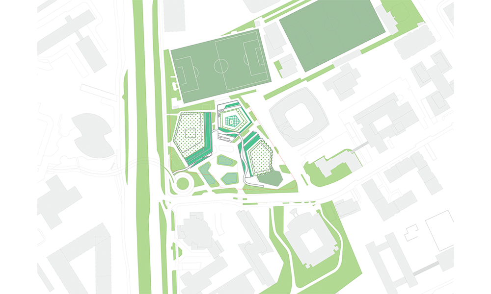 La propuesta de UNStudio ha sido diseñada para ser altamente sostenible y preparada para el futuro. Demuestra estándares de sostenibilidad altos e integrales y un enfoque personalizado en el uso de tecnología y diseño inteligente de recursos naturales.