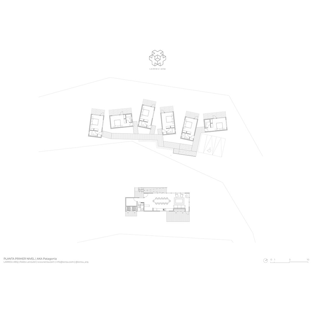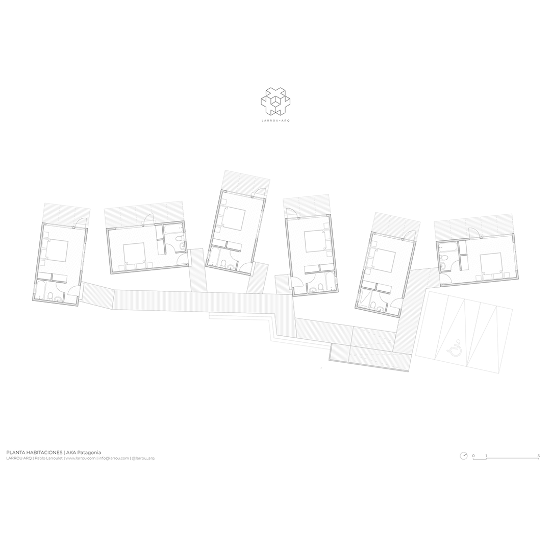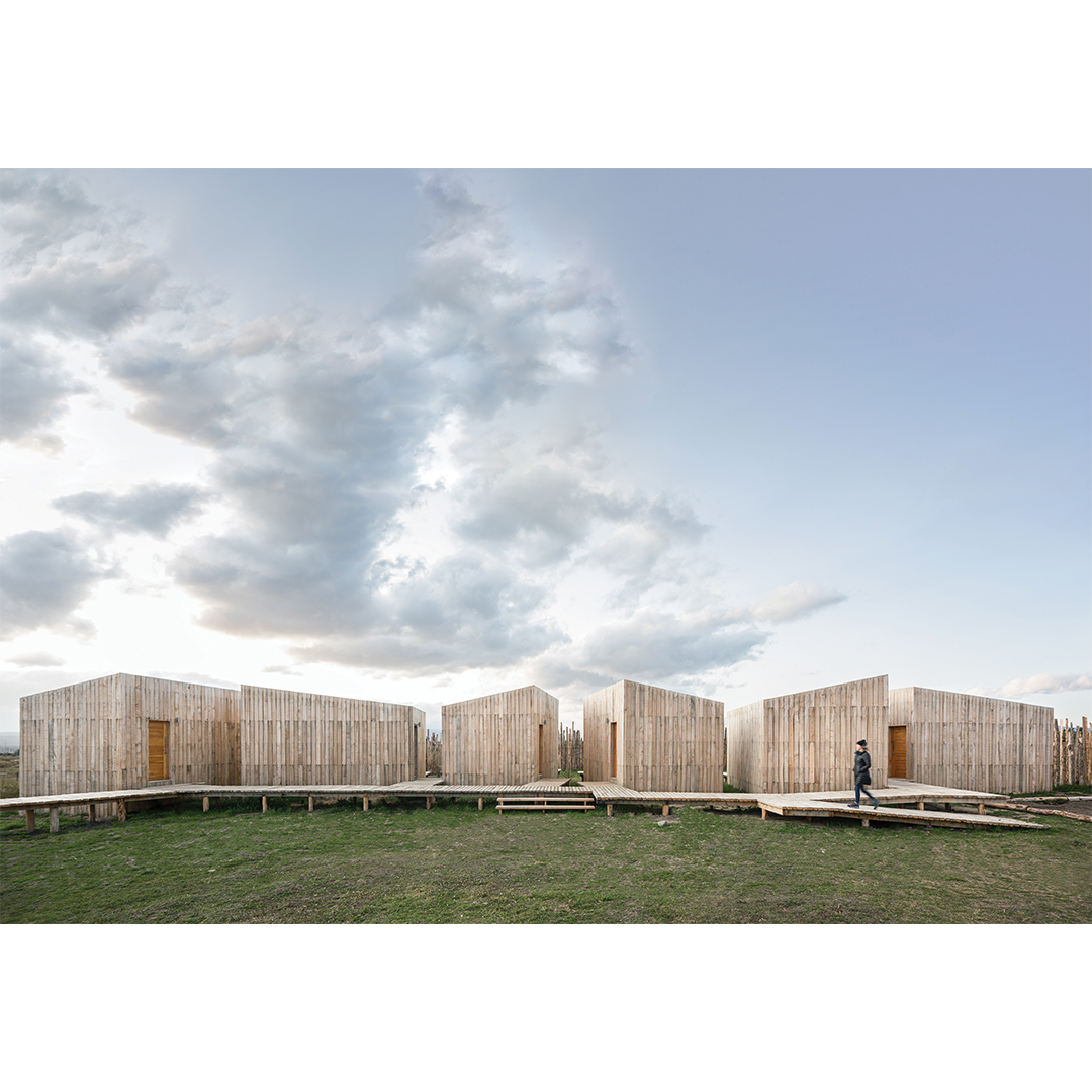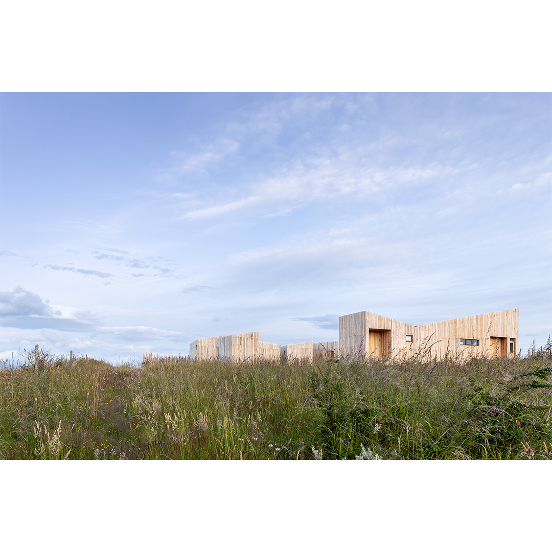 Los 6 módulos prefabricados en madera se construyeron en un astillero y luego fueron instalados en el sitio, posicionados estratégicamente para enmarcar las vistas a las distintas atracciones naturales y obtener la mayor cantidad de luz natural durante el día. Toda la construcción fue proyectada sobre pilotes para generar el menor impacto en el terreno existente.