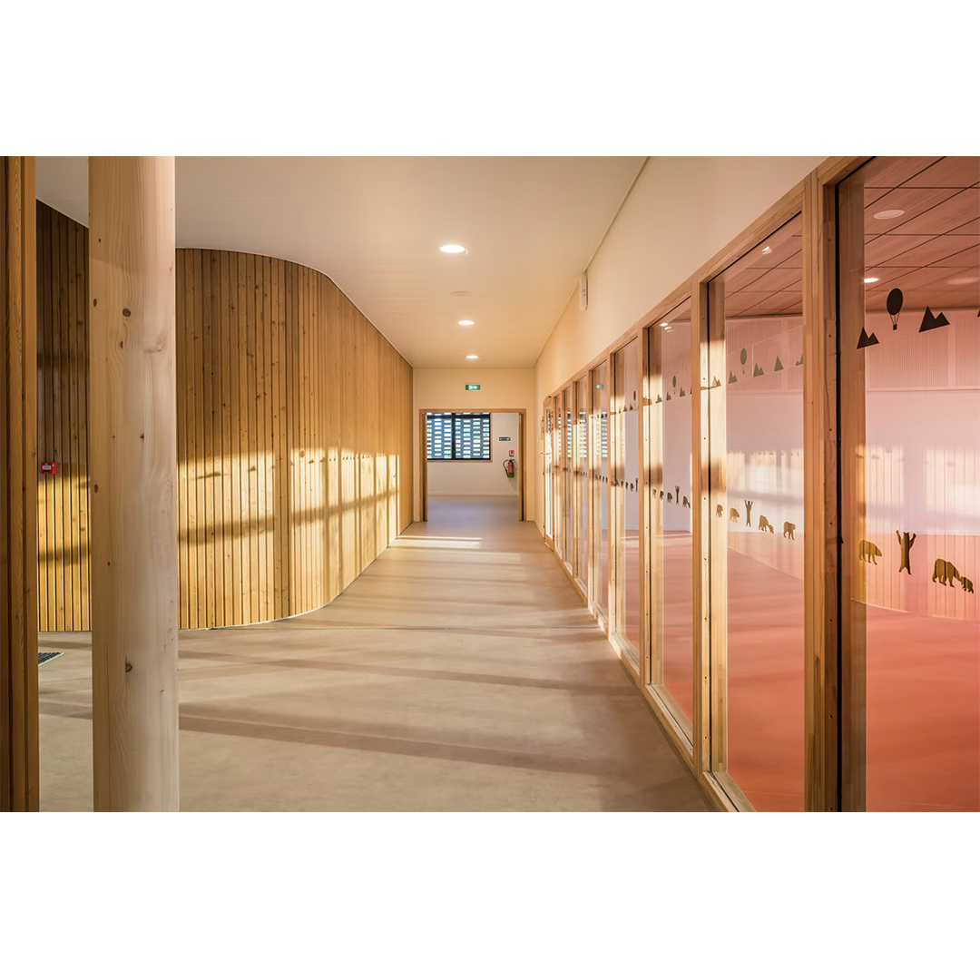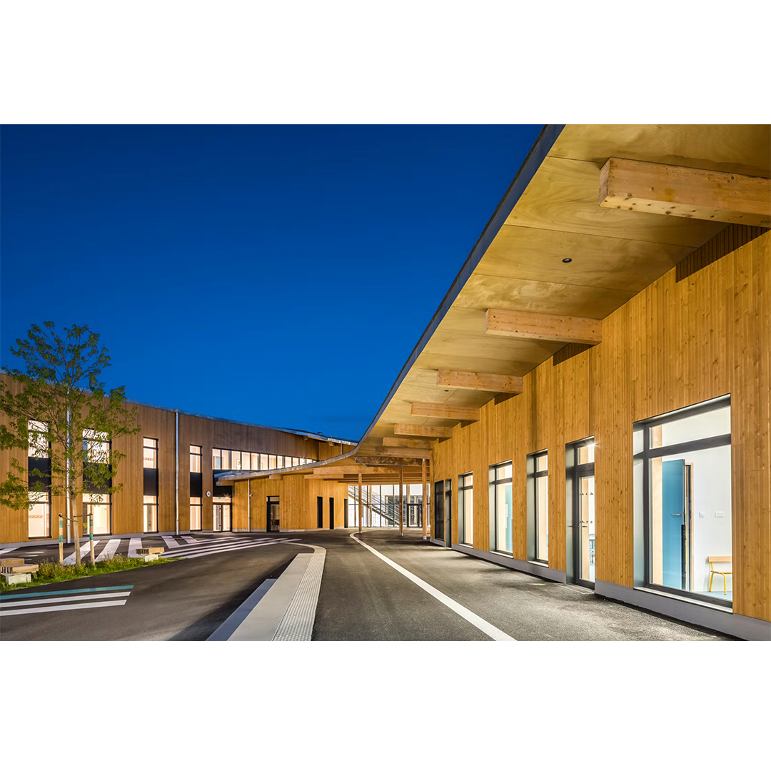 El grupo escolar expresa la frontera entre la ciudad y el campo a través de un vocabulario distinto entre las fachadas urbanas y el corazón del edificio, una transición entre lo público y lo íntimo. Expresa el viaje de elevación que trae la educación con su espiral que asciende hacia la escuela primaria, símbolo del tiempo y de la progresión del ritmo de la vida.