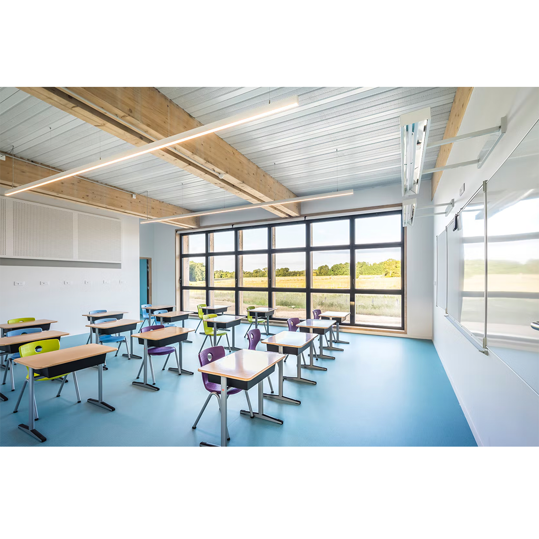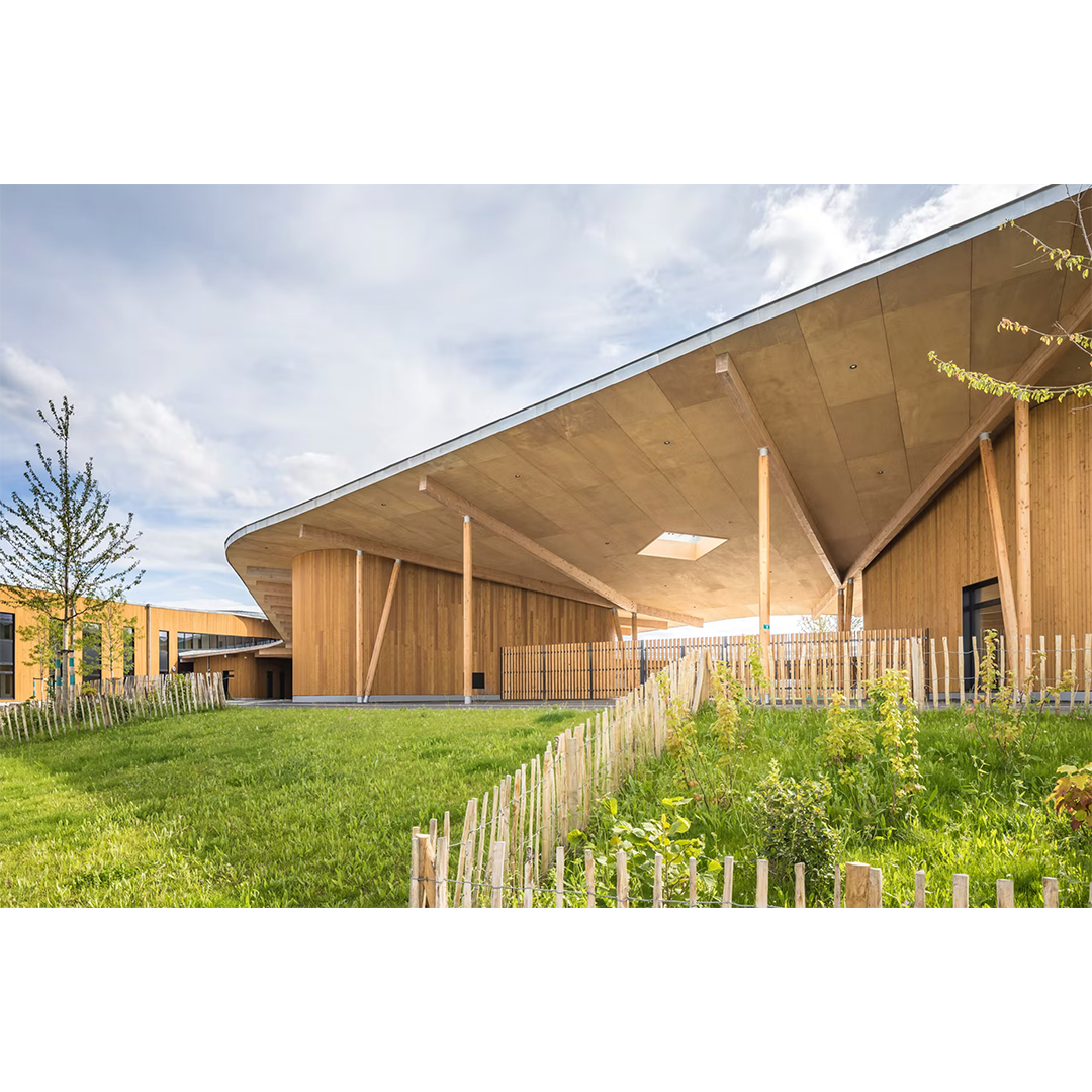 El grupo escolar es el primer elemento de un nuevo distrito de la ZAC de Coupvray. Más que tener que lidiar con las limitaciones específicas de un sitio, el principal desafío de este proyecto fue crear un equipamiento público fundador y estructurante para esta nueva área de la ciudad. Así, el proyecto hace el vínculo con lo existente y la naturaleza mientras se vuelve hacia el gran paisaje.