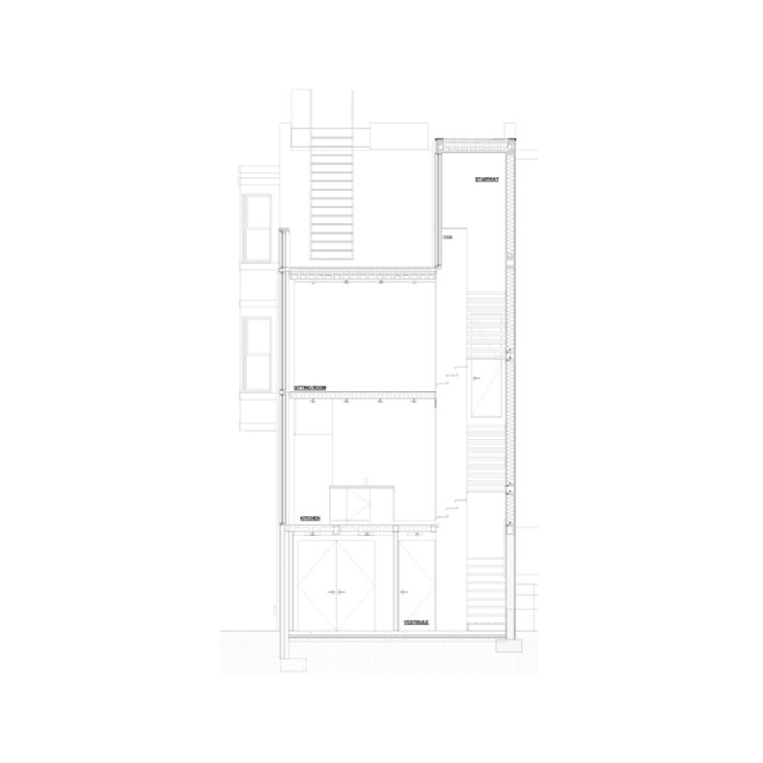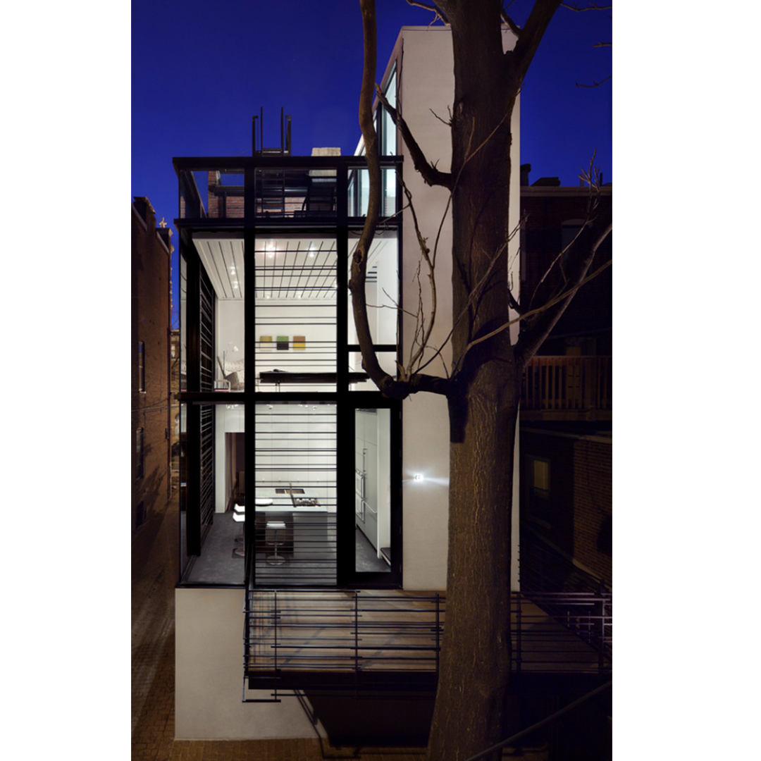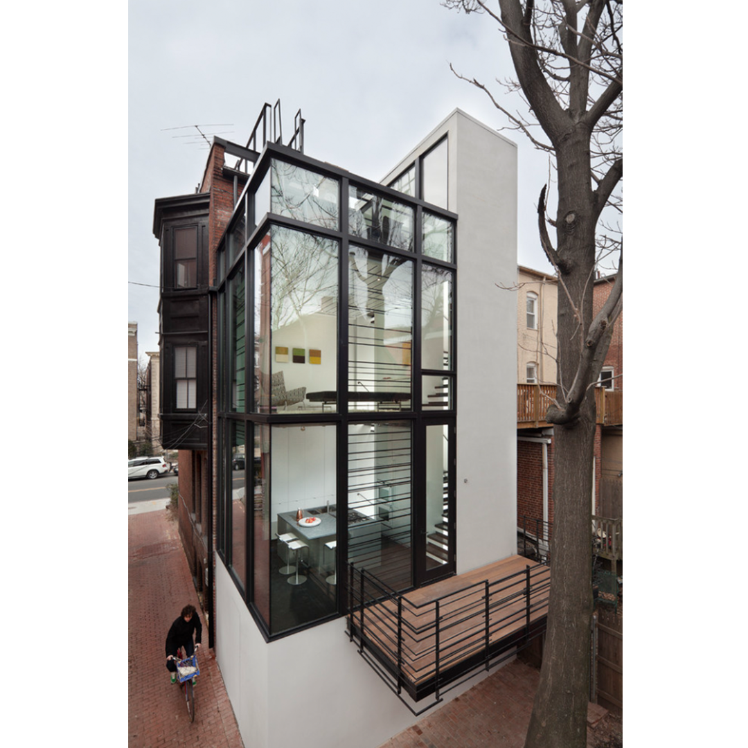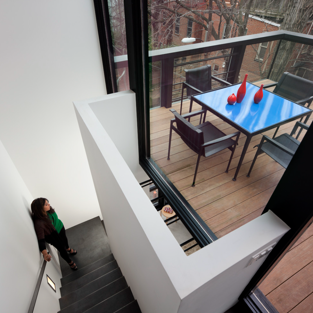 Los frágiles muros de mampostería existente en Washington DC, hicieron que la adición se diseñara como una estructura independiente. Las limitaciones del sitio dictaron una solución espacial orientada verticalmente.