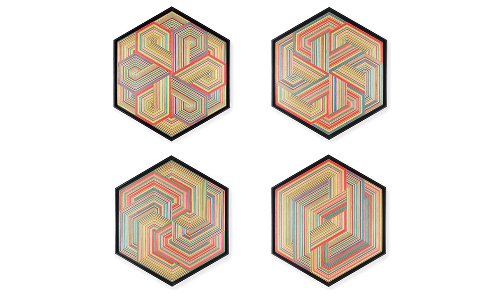 La inspiración para su trabajo son los patrones de líneas clásicas del movimiento de estilo Art Deco de las décadas de 1920 y 1930. “Al buscar una manera de traducir el revestimiento colorido de las viejas patinetas en estos patrones de líneas, descubrí un mundo geométrico detrás de estos patrones con infinitas posibilidades”, dice Nedić.