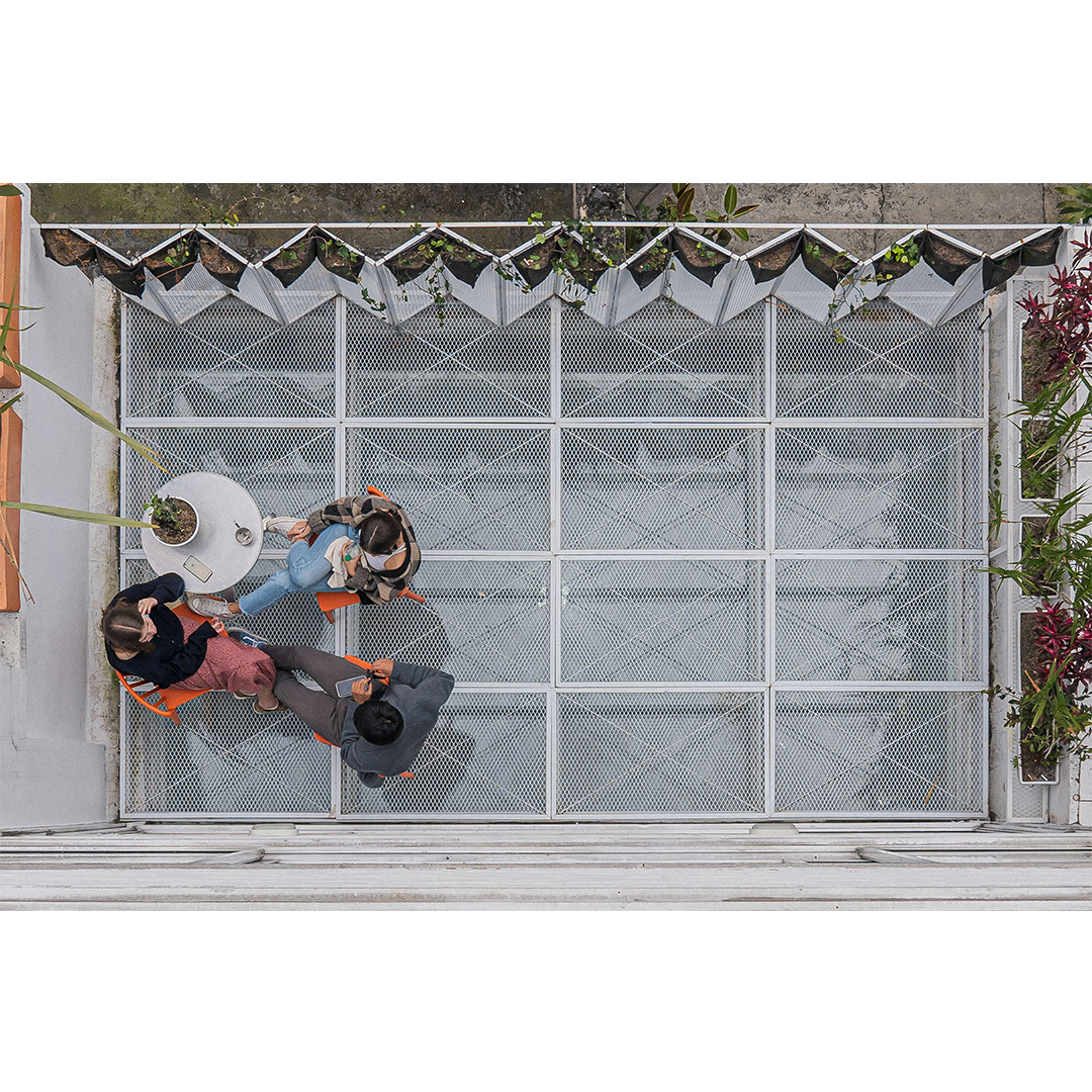 La arquitectura del espacio propicia la relación interior exterior con una primera planta que se abre completamente hacia la calle, las relaciones visuales entre todos los niveles y las actividades simultáneas y el uso de los puentes de circulación como zonas de socialización.