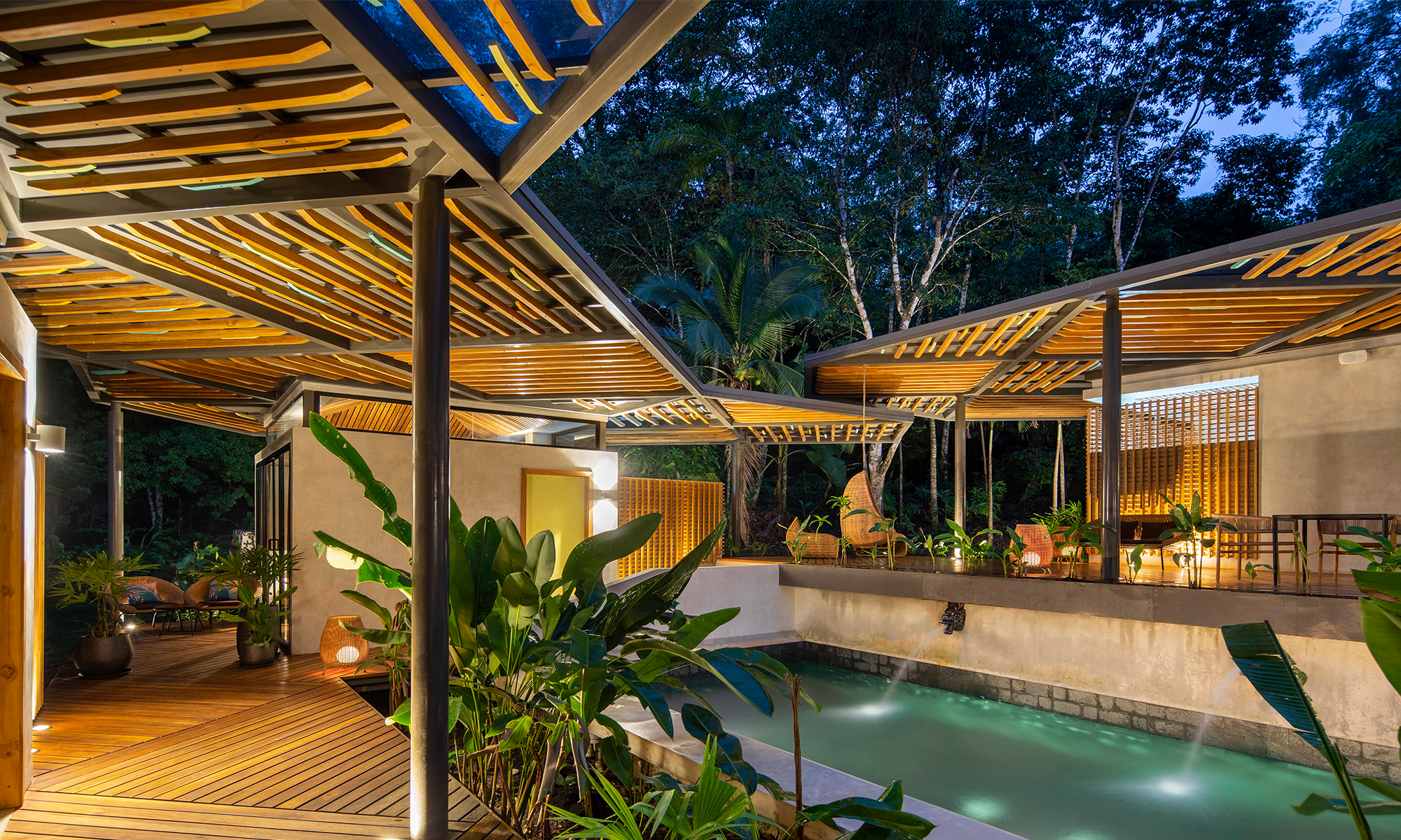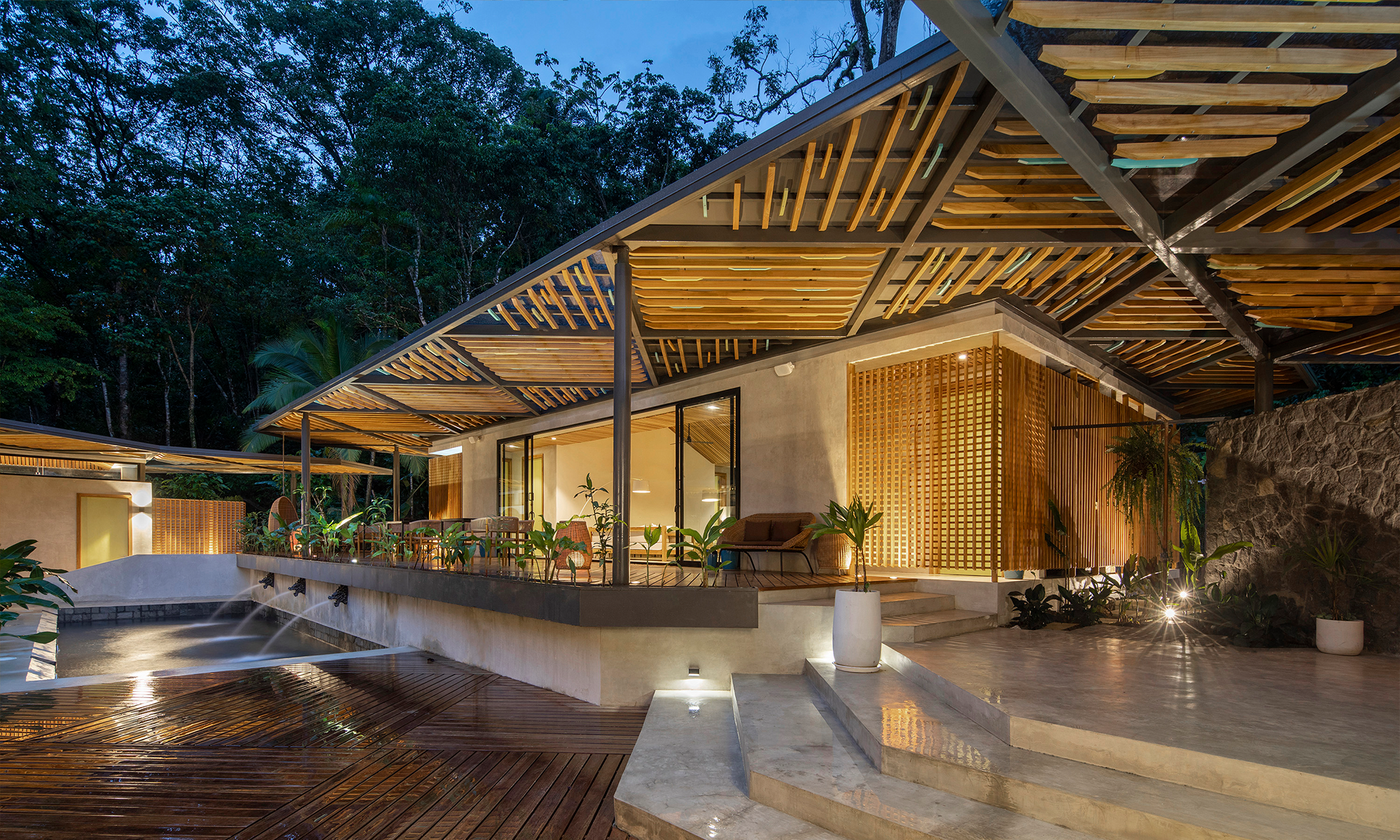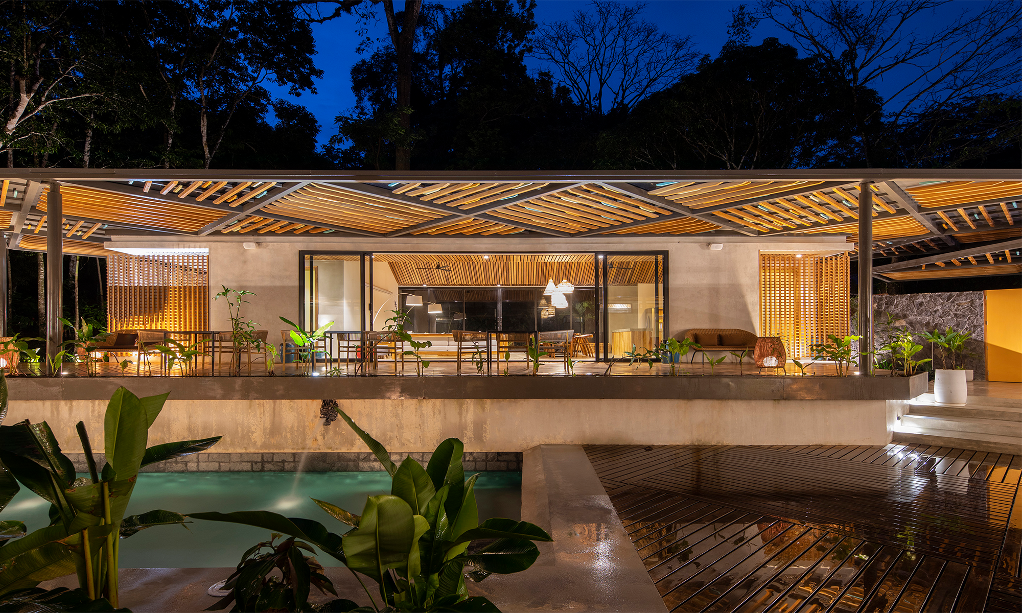 Casa Tropical se confecciona en la jungla de Costa Rica. Studio Saxe crea una pérgola tropical en la selva de la costa caribeña de Puerto Viejo, Limón.