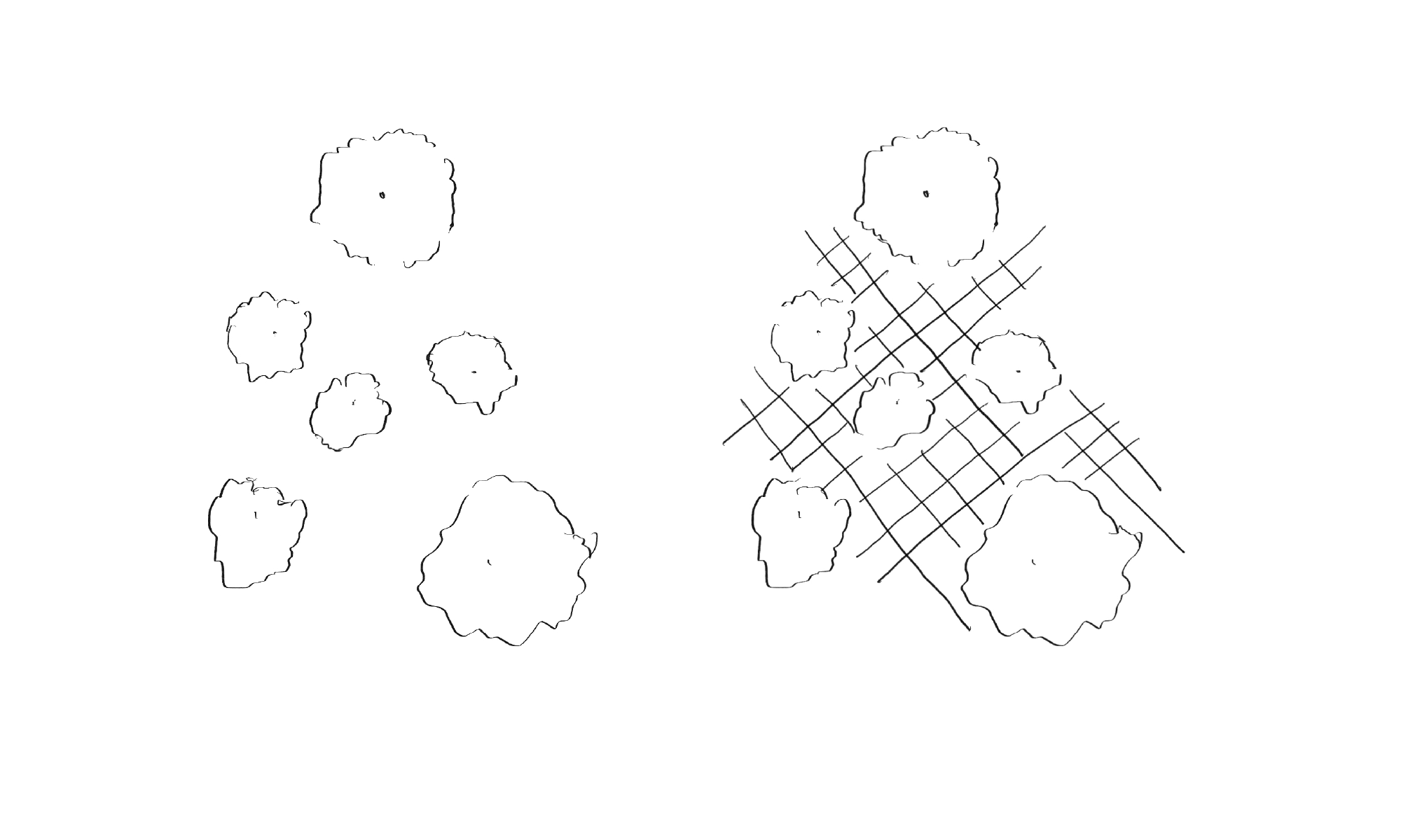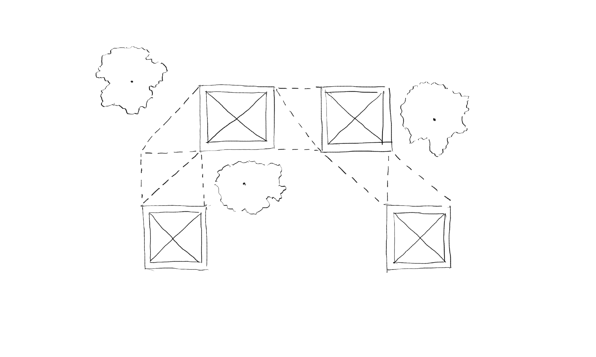Diseñamos una estrategia de agregación creando una red de pérgolas trianguladas que pueden aumentar o disminuir dependiendo de la necesidad del cliente a lo largo del proyecto. Esto, a su vez, permite que las personas circulen y se dirijan a las diferentes habitaciones y áreas privadas o sociales alrededor de la casa mientras se entrelazan con la vegetación y la selva existentes. Cada habitación es un espacio contenido que puede colocarse en cualquier lugar de la propiedad.