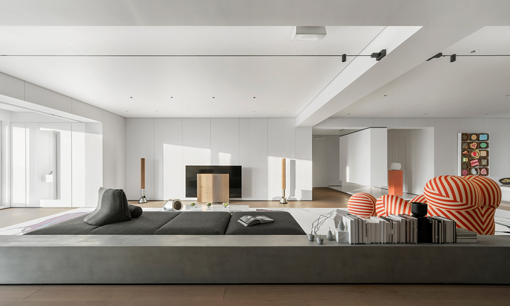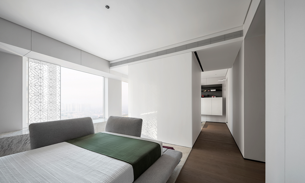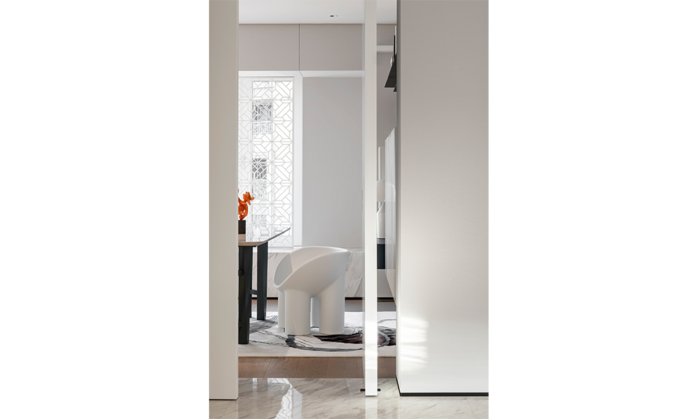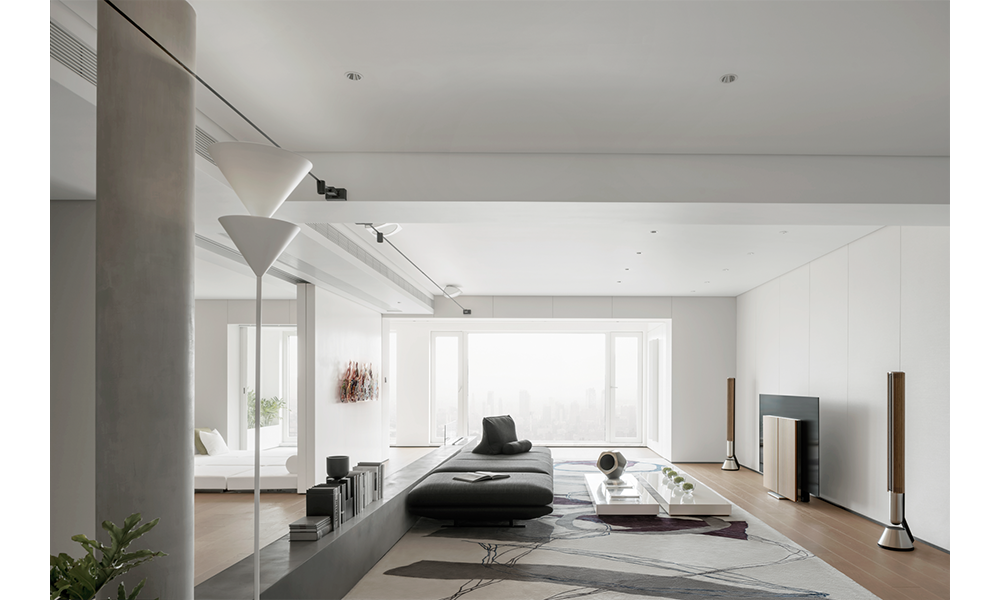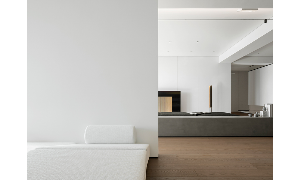 Minimalismo no significa forma fija u orden único. Evans Lee tiene años de experiencia en infundir minimalismo en la vida de los residentes. Basado en el concepto de “espacio integral e interacción espontánea”, el diseñador dividió el espacio para demostrar lo más completo y visible posible, presentando el minimalismo a través del vasto espacio vacío, eliminando la limitación y reconstruyendo el paisaje. Deambulando en el espacio interior, el cuadro cotidiano se presenta en un estado bajo con ambiente poético.