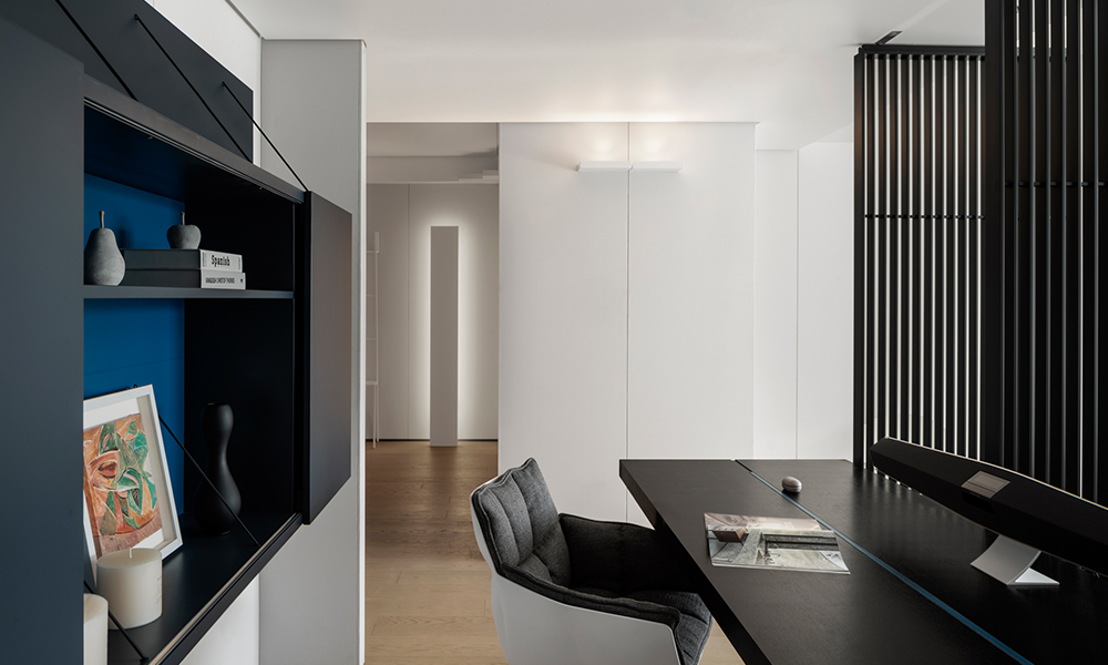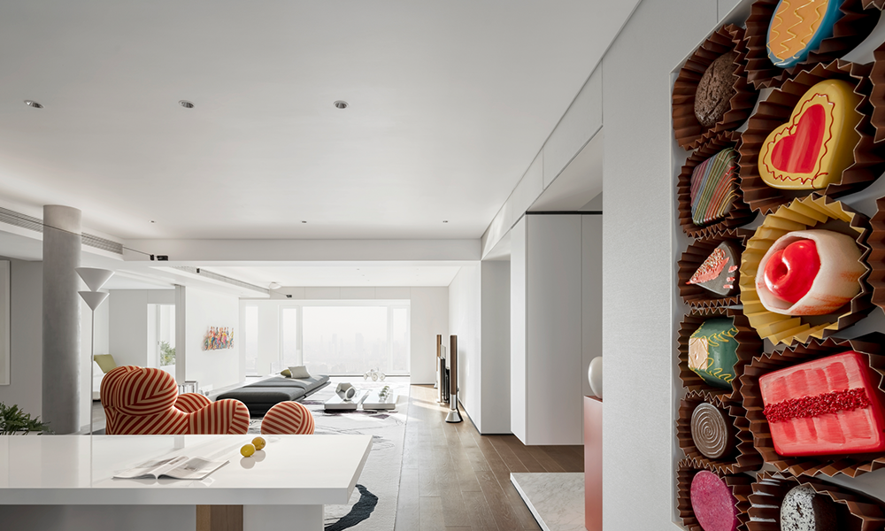 En este proyecto, Evan crea el espacio como puro fondo. Con la interacción múltiple en la vida, la residencia de la novela poética surge, como una galería artística. “Ya sea la mansión, la villa o el apartamento, el primer paso de nuestro diseño es abrir el espacio, eliminando paredes y puertas redundantes, dándonos cuenta del abrazo de la luz y la circulación de la brisa”.