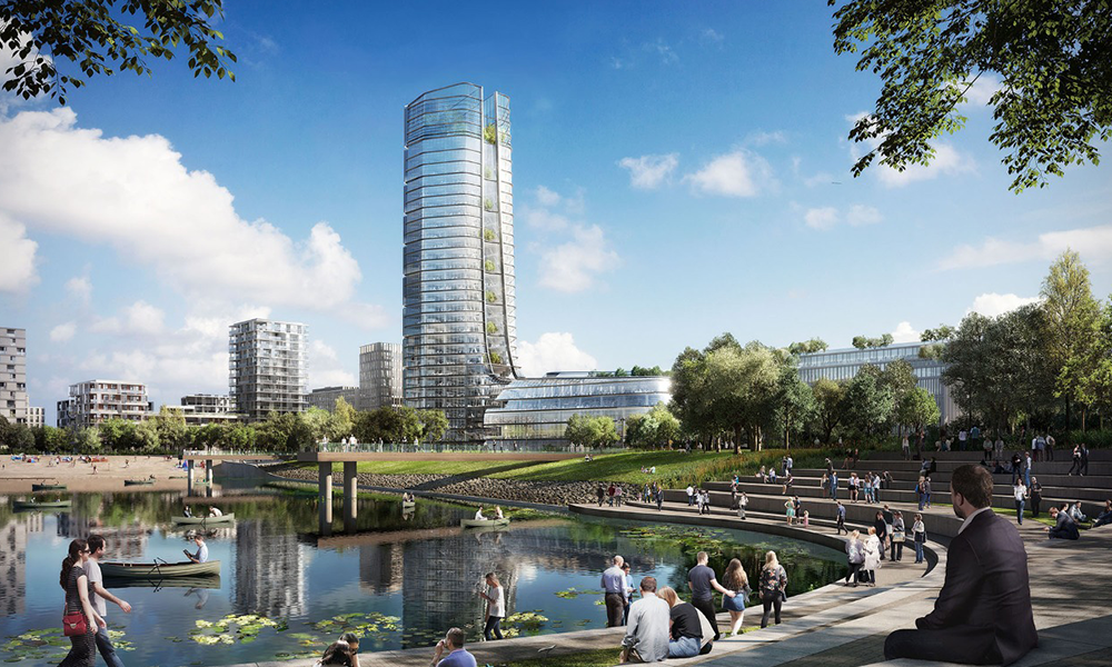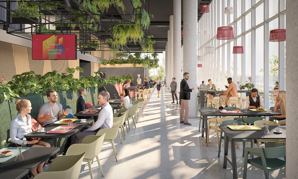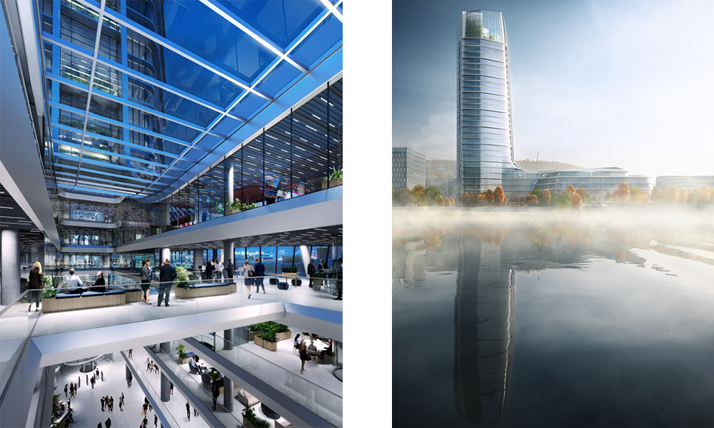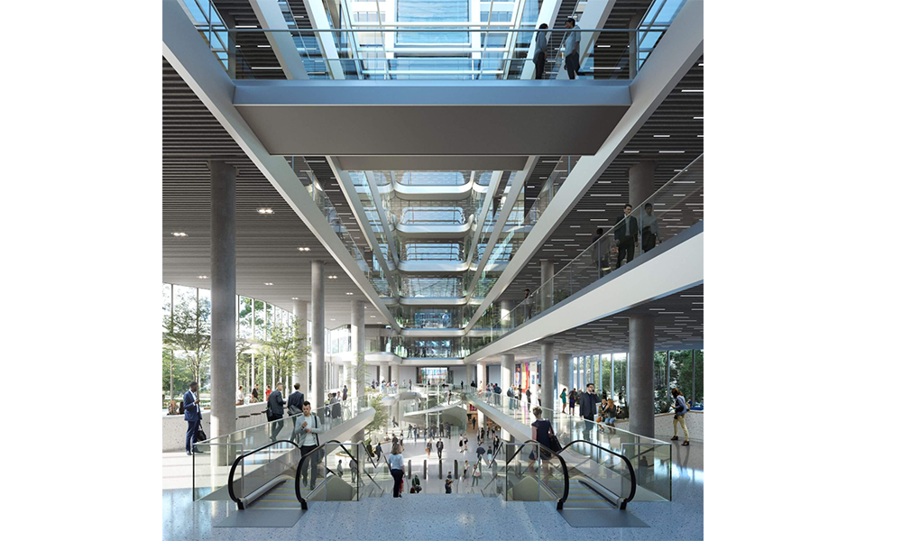 La forma distintiva del edificio integra una torre de 28 plantas con un podio en una sola forma para crear un campus unificado. El arquitecto, Foster + Partners, es conocido por sus diseños rompedores, que integran funcionalidad, sostenibilidad y ecología. El edificio está diseñado para aprovechar al máximo la luz natural, el aire fresco y las extraordinarias vistas de la ciudad que lo rodea. Además de utilizar recursos de baja o nula emisión de carbono, incluye la recogida y almacenamiento de agua de lluvia.