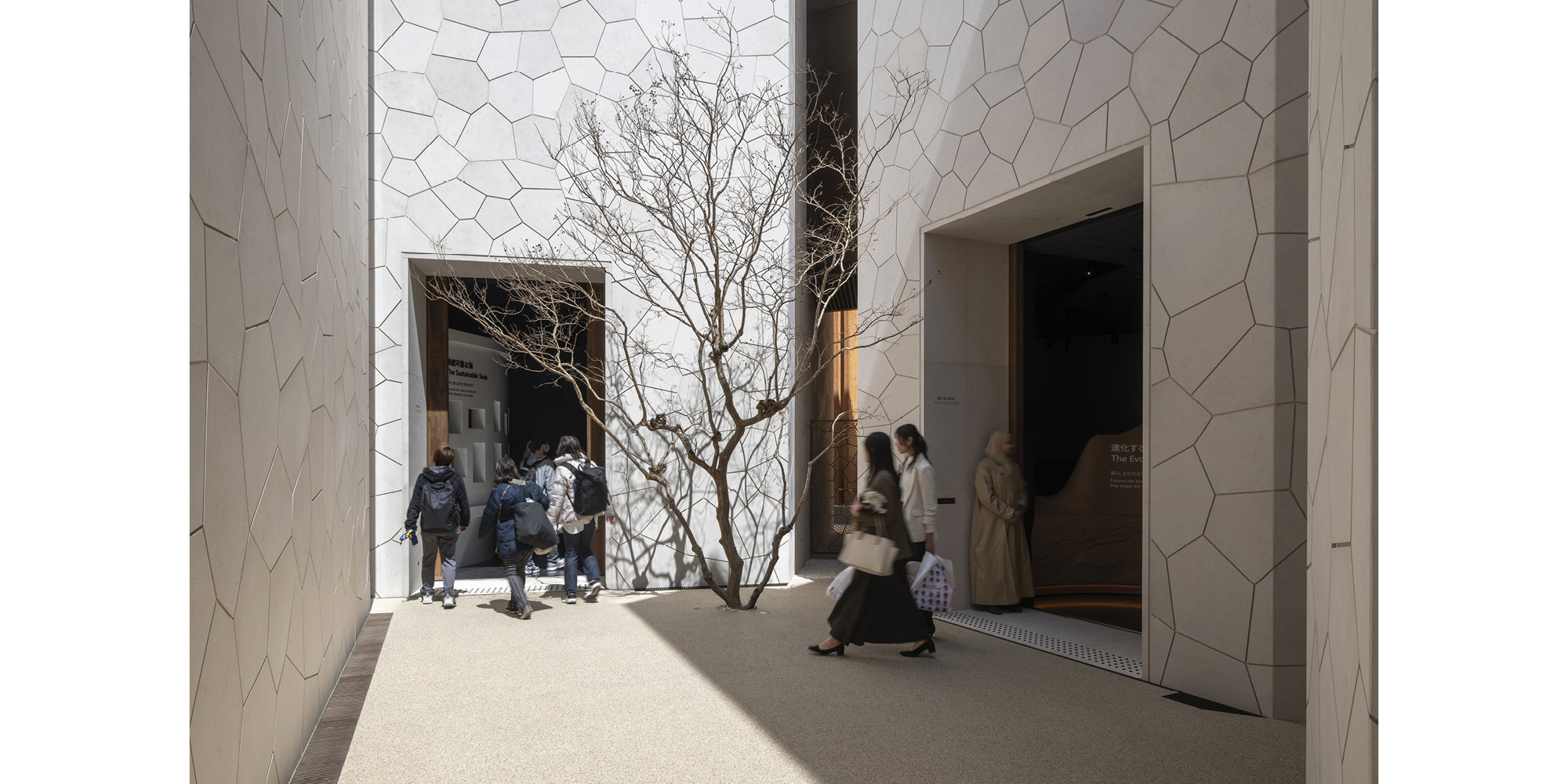 - Una entrada con rampas se adapta al gradiente del sitio y proporciona una única entrada para todos los visitantes.