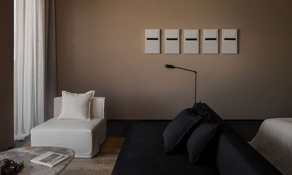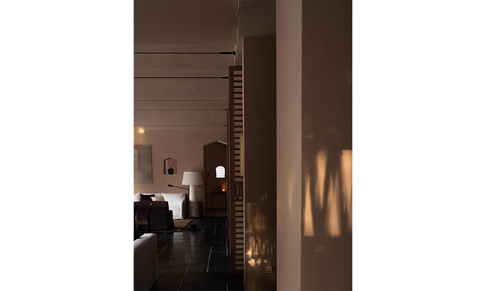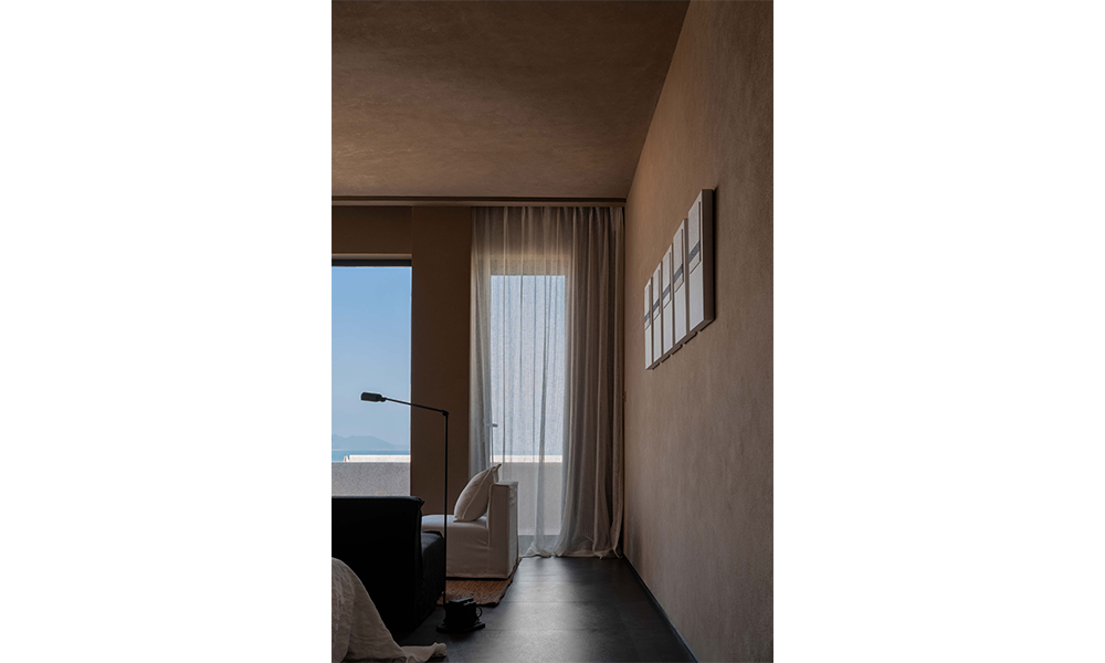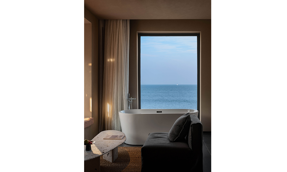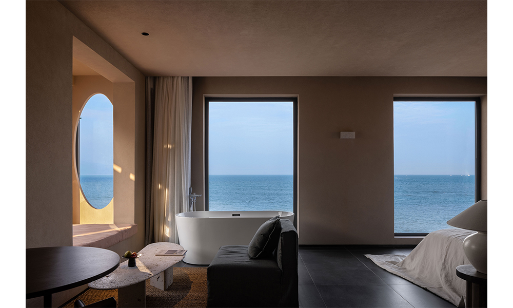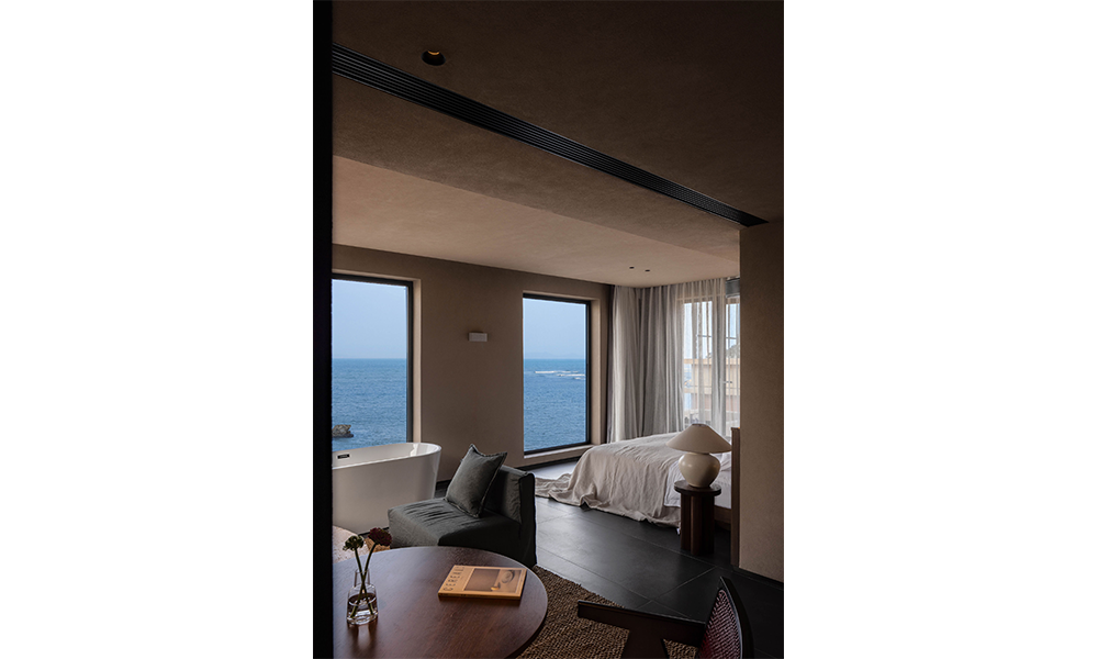 La habitación con vista al mar continúa con el sistema de color del espacio, y el toque suave que aporta la tela de lino es como la caricia de las olas. Las enormes ventanas del piso al techo eliminan los límites del espacio, invitan al paisaje natural y se integran con el espacio interior. En este momento, la habitación no es solo un portador de espacio para las personas, sino también un campo exclusivo para la interacción y percepción entre las personas y el espacio y la naturaleza.