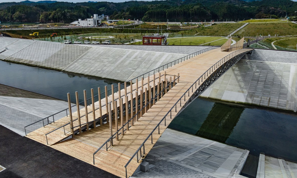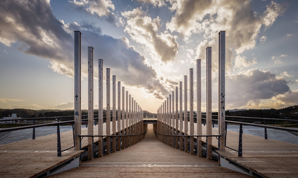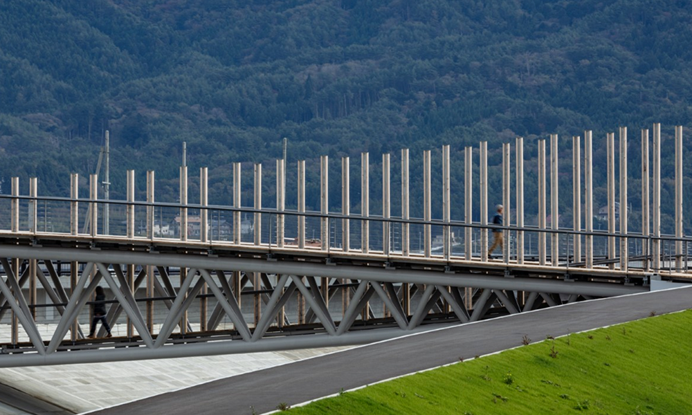 Nakabashi es un puente peatonal que representa los esfuerzos de restauración de Minami Sanriku en los que Kengo Kuma ha estado involucrado desde 2013.