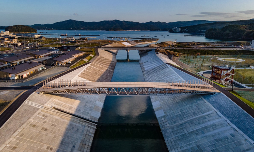 El diseño del puente se consideró como un lugar de oración que conecta el bullicioso Minami Sanriku Sun Sun Shopping Village y el Reconstruction Prayer Park (el sitio del antiguo desastre edificio de oficinas de prevención).