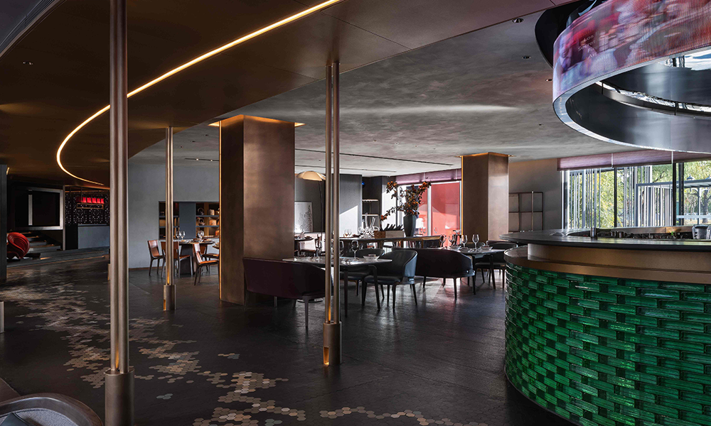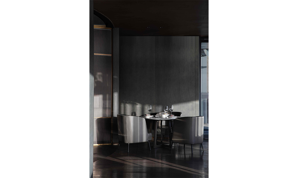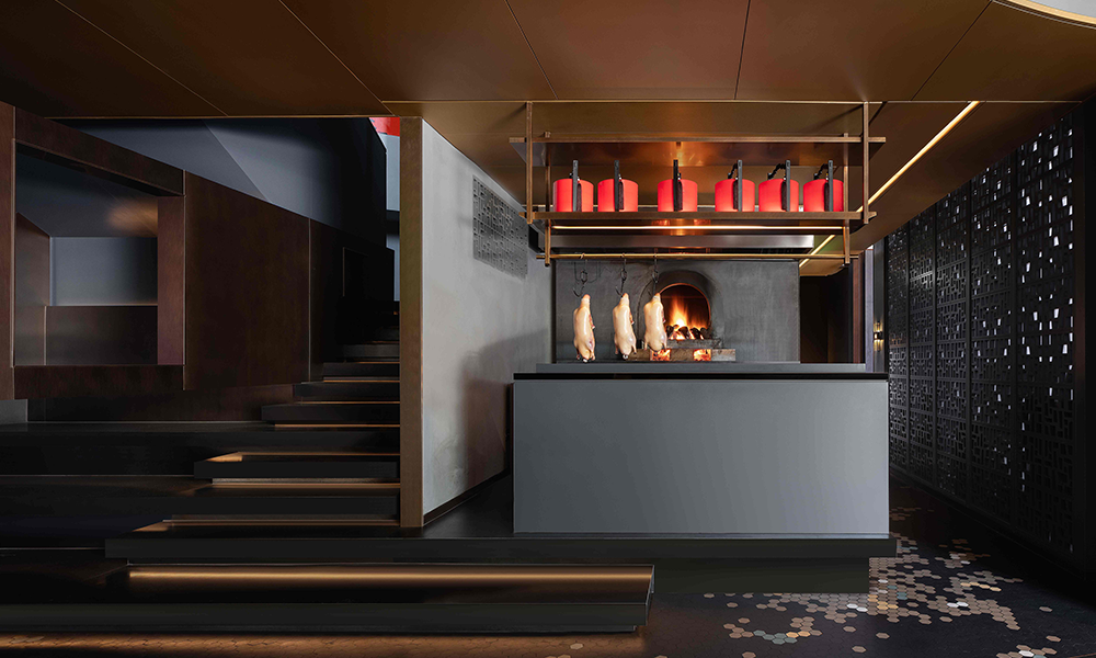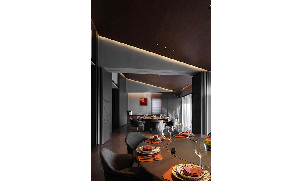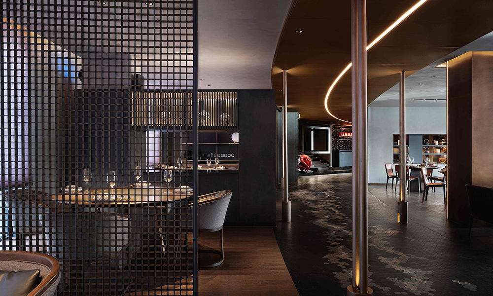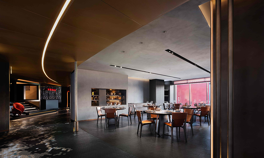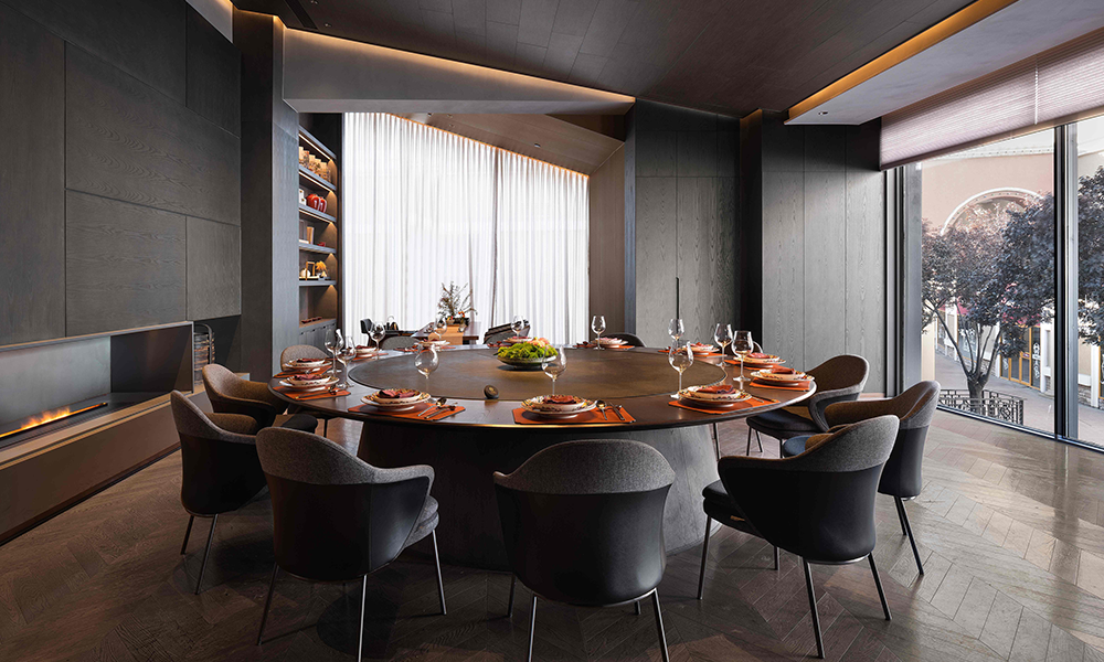 Lo mismo ocurre con el diseño del espacio, que es asimétrico y combina elementos chinos y occidentales, lo que hace que cada momento de la cena sea tan extraordinario y refleja fielmente la tendencia espacial del catering moderno de unidad de concepción gastronómica y artística.