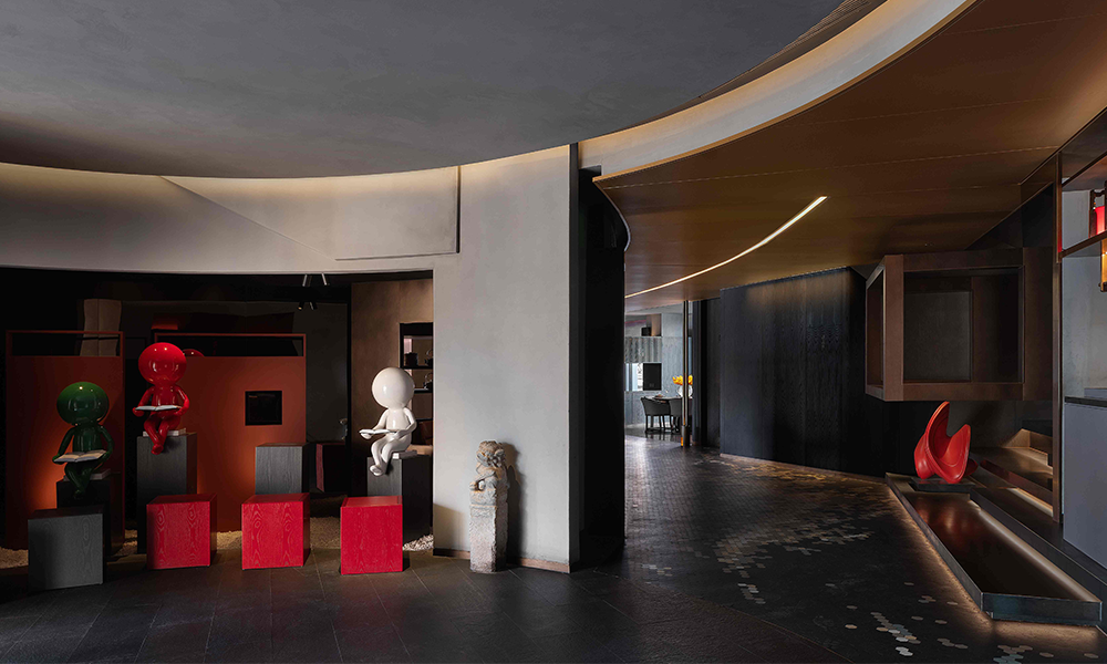 En cuanto al segundo piso, aprovechamos la cubierta inclinada del propio edificio para diseñar varias salas privadas al estilo de los patios chinos, y diseñamos mesas de té y chimeneas, con la esperanza de presentar recuerdos del pasado y el sabor del hogar en un manera moderna. La planta baja es el área de apreciación del arte, que tiene un diseño simple y está adornada con obras de arte, pareciendo una galería de arte.