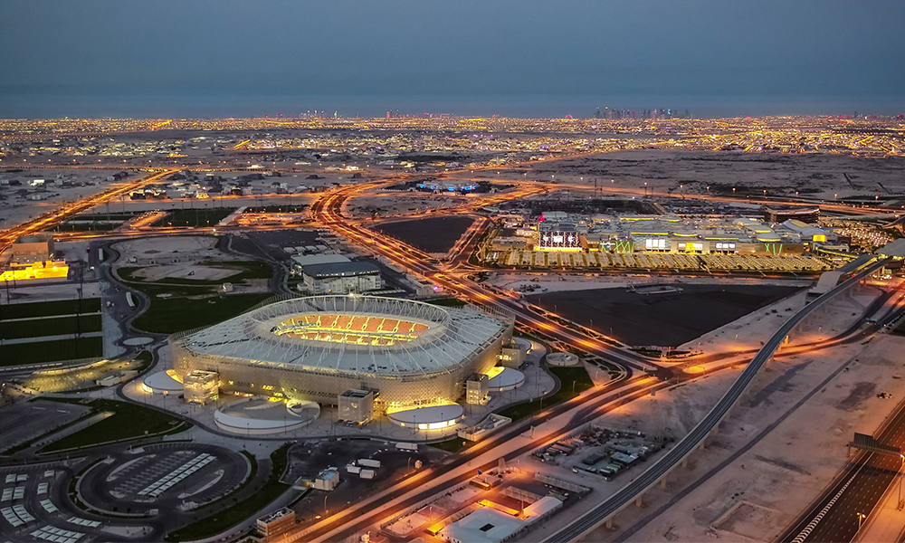 El estadio construido en el sitio de el mismo nombre, incorpora símbolos de la cultura qatarí en su espectacular fachada ondulada. Las instalaciones que rodean el estadio también reflejan el país, con estructuras en forma de dunas de arena que recuerdan las bellas tierras salvajes del oeste