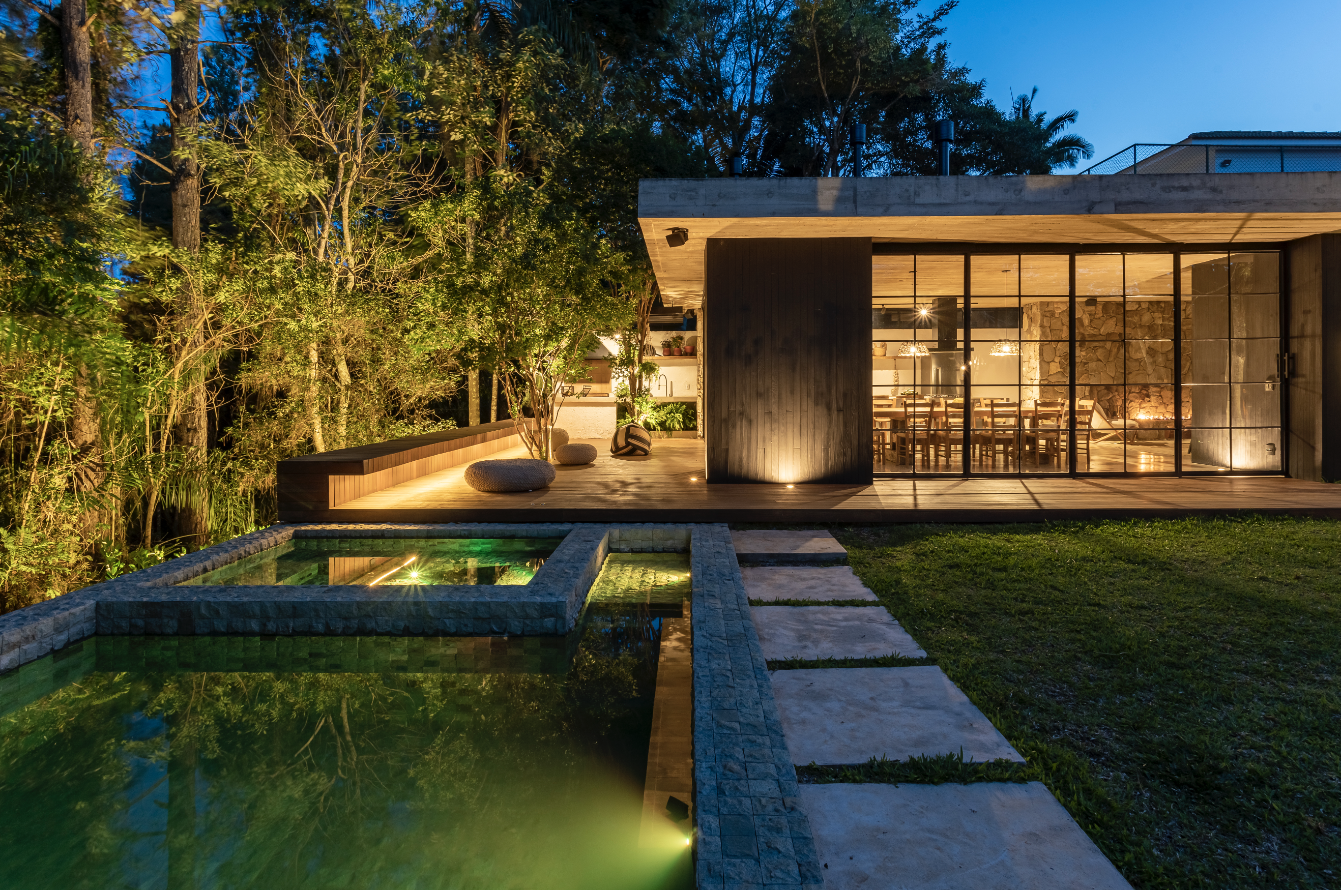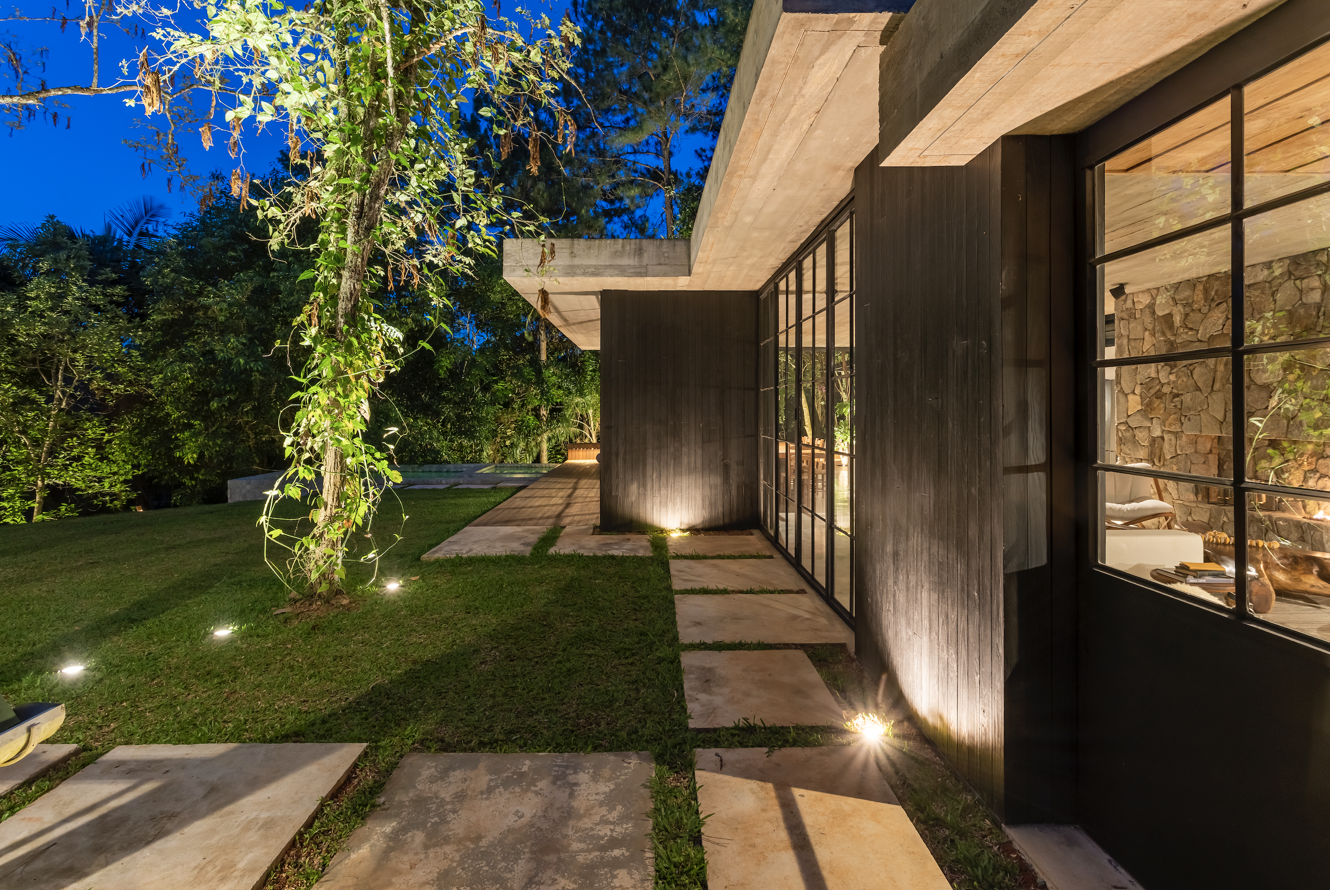 El principal desafío fue insertar la necesidad del programa en el terreno sin tener que meterse con los árboles existentes. Para ello, se realizaron varias pruebas para preservar los árboles de Ipê en el césped y los árboles de jabuticabeira y pitangueira en la cubierta.