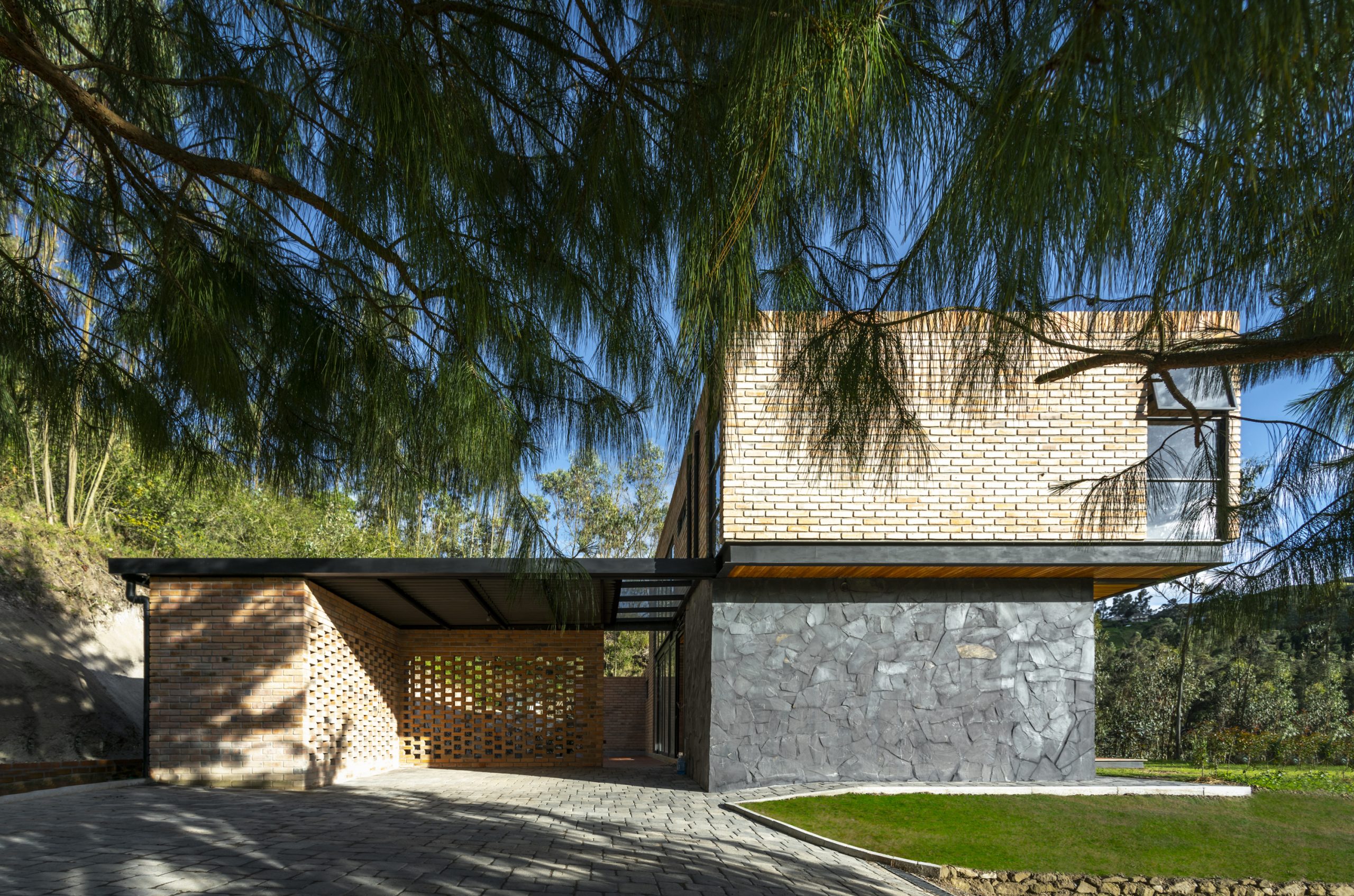 Ubicada al Sur de Cuenca, en un terreno rural saturado de vegetación de la zona y con una gran pendiente que nace desde un Chaparro cobijado de diversos árboles, arbustos y plantas endémicas. Esta casa nació con una característica particular, en las visitas previas al terreno conjuntamente con el cliente, manifestaron una atracción muy marcada hacia el ladrillo visto, teniendo desde el inicio una condicionante que marcaría posiblemente la materialidad del proyecto, dando lugar a preguntas y reflexiones de cuánto dónde y cómo se lo debía usar.