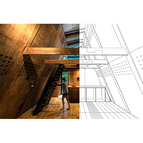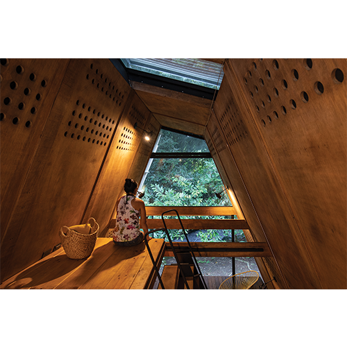 Huaira es una vivienda mínima de 42m2 distribuidos en dos plantas. En la planta baja se encuentra el área social, cocina y baño, mientras que en la planta alta se ubica la zona de descanso. Todo pensado con la idea de generar una experiencia al habitarla.