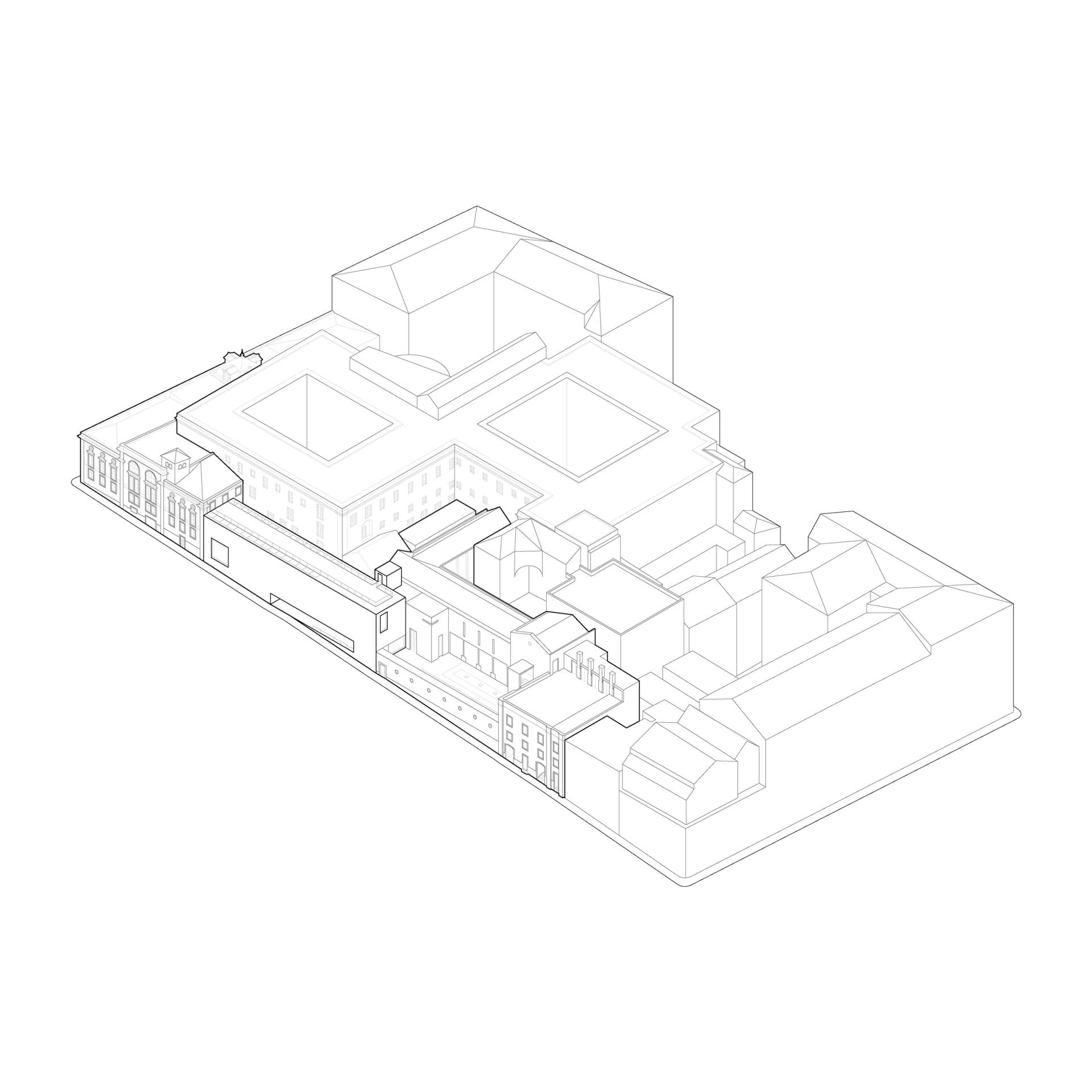 Esta organización permite separar las funciones técnicas del espacio público, manteniendo una distribución funcional que facilita el trabajo del personal sin interferir en la experiencia del visitante. En el nivel de acceso, el vestíbulo cuenta con una tienda y una cafetería con acceso directo al jardín de esculturas, integrando estos espacios en la vida cotidiana del barrio y permitiendo que funcionen de manera independiente. Las salas de exposiciones temporales están diseñadas con iluminación ajustable y elementos móviles, lo que facilita una disposición flexible y versátil que se adapta a diferentes formatos de exposición, promoviendo una experiencia interactiva y dinámica.