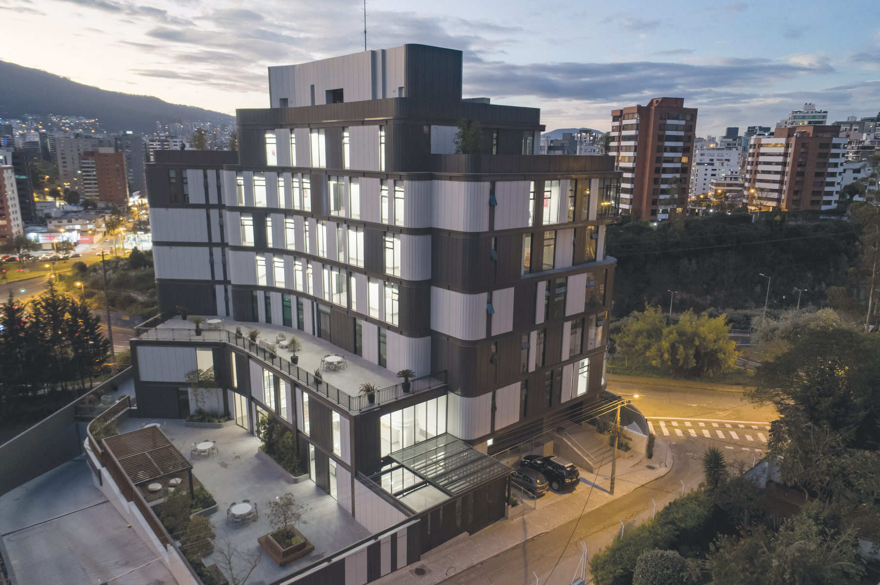 Todas las terrazas del edificio poseen espacios de vegetación mediana y baja circundante, además de celdas fotovoltaicas para recolección de energía solar ya que el edificio posee asoleamiento intenso la mayor parte del día en su lado norte. La tecnología de la fachada permite un microclima controlado al interior de las oficinas y el aire acondicionado está prácticamente en desuso.