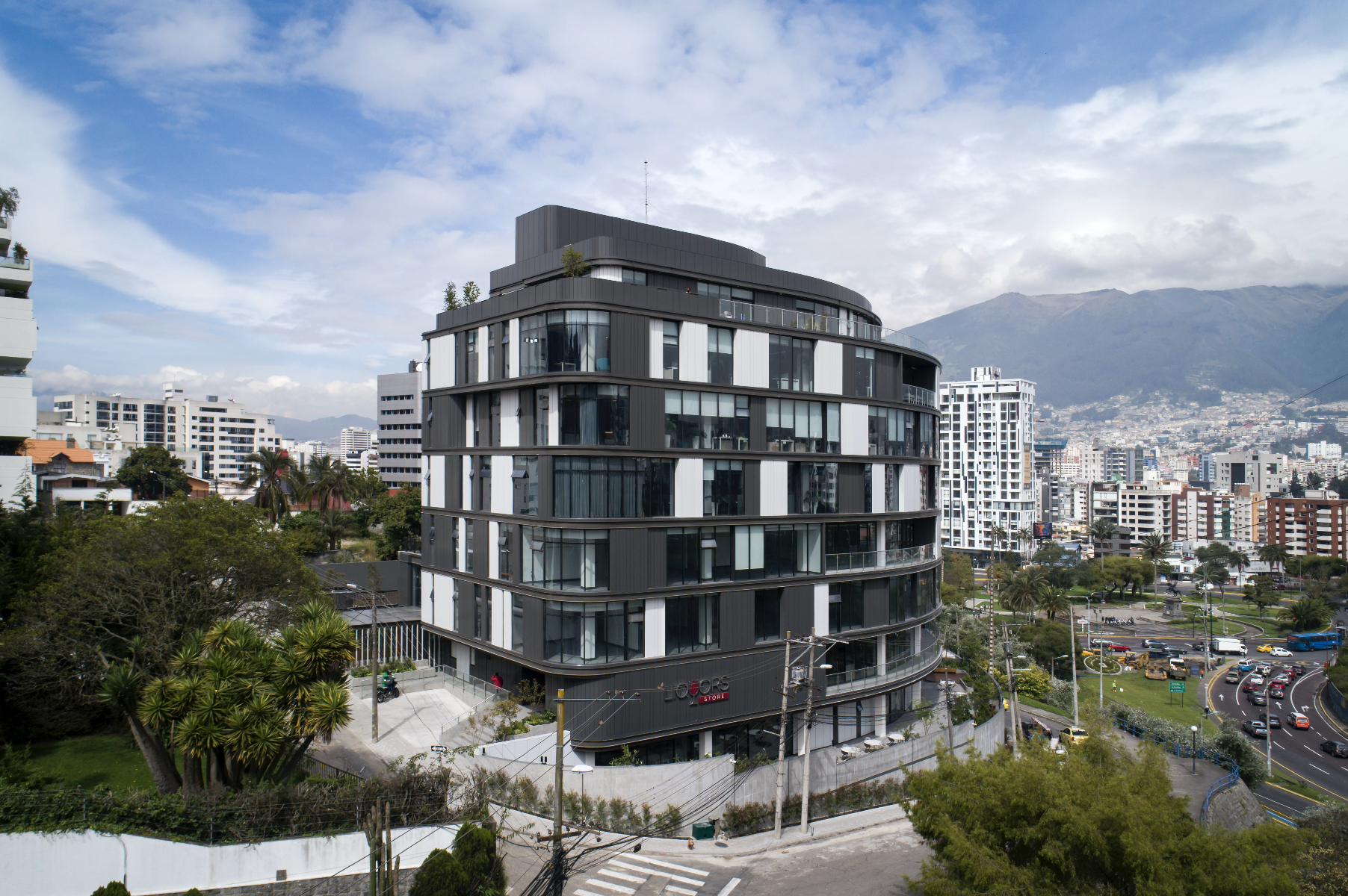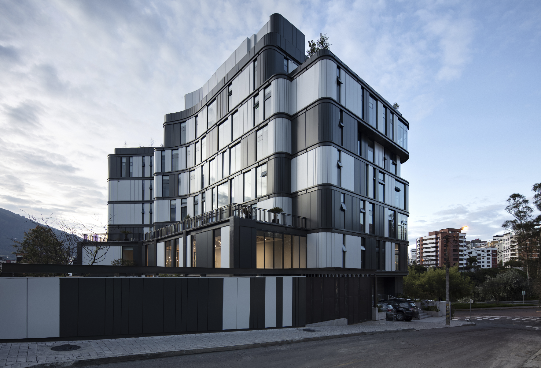 La geometría en planta del edificio resulta de condensar el contorno de lote en dos volúmenes unidos por un atrio, enlazado por puentes en varias alturas y disposiciones; el frontal posee vistas panorámicas de la ciudad y las montañas, mientras que el posterior se relaciona discretamente con el entorno inmediato. Cada bloque corresponde a una empresa de la corporación, las mismas que actúan en distintos campos, pero conviven en la práctica.