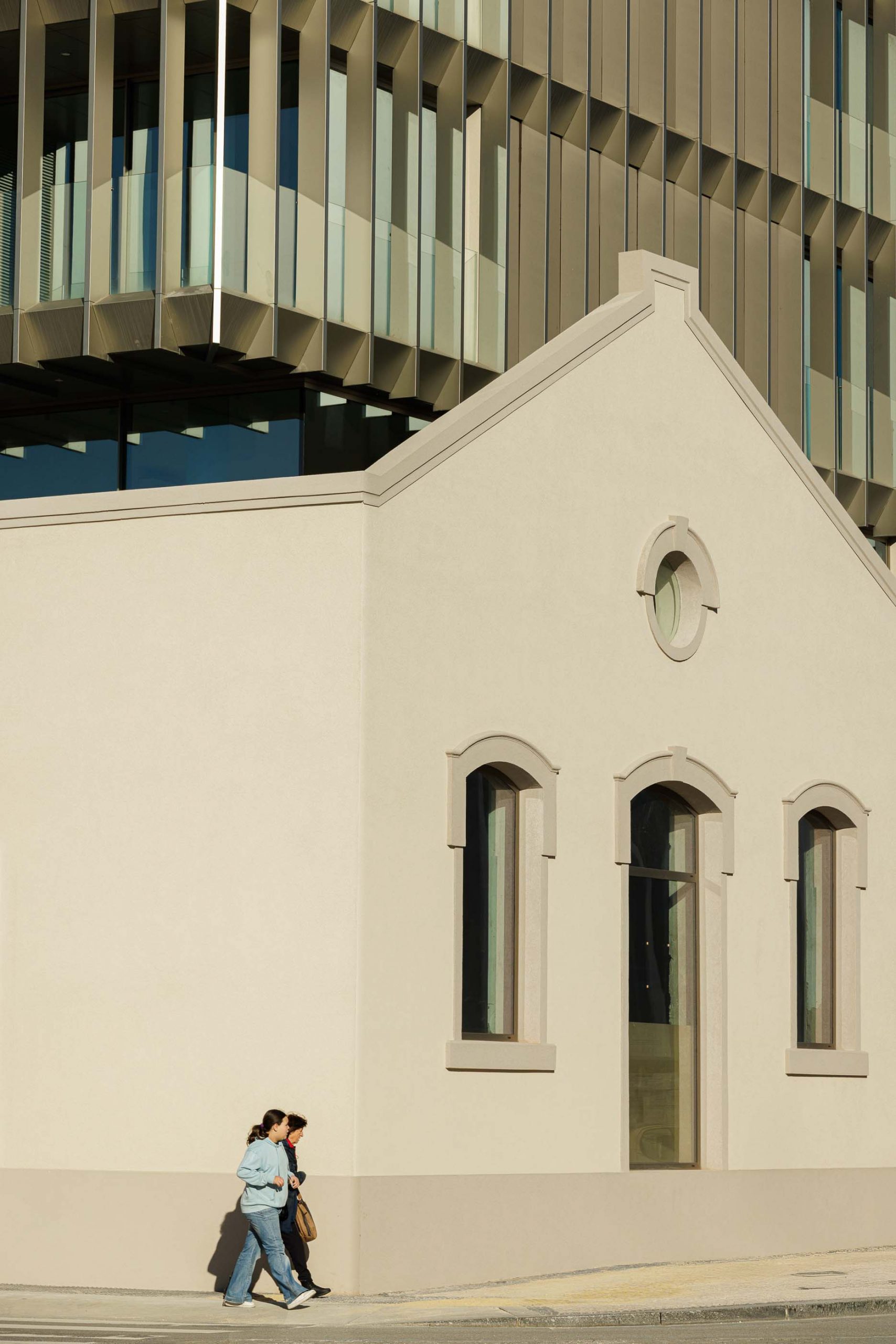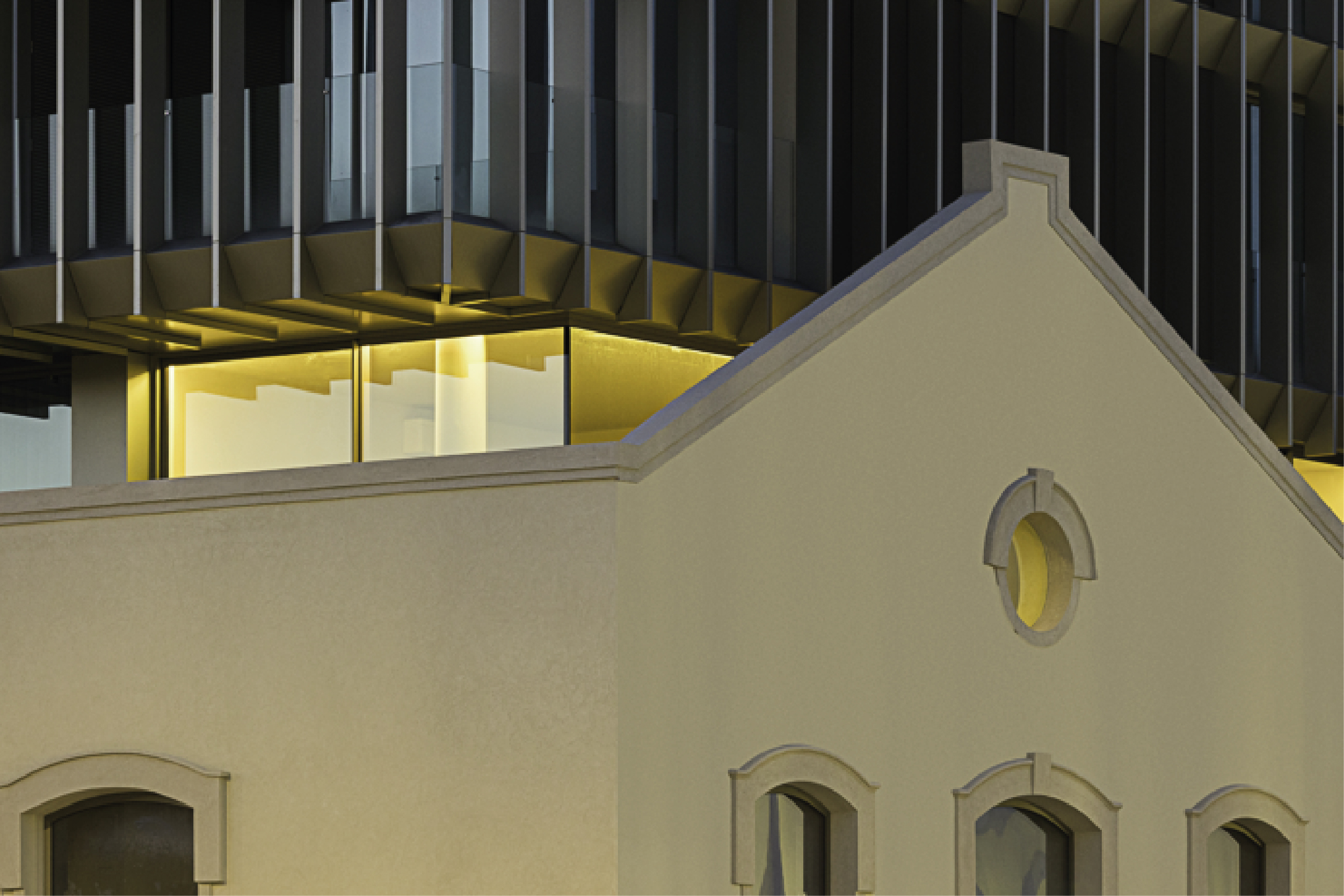 El lenguaje arquitectónico del nuevo volumen es claro y deliberadamente distinto del de la construcción original. Mientras que la preexistencia es un volumen opaco y sólido, con características tradicionales y constructivamente pesadas, el nuevo volumen aparece como un elemento más ligero, orgánico, transparente y contemporáneo. Esta búsqueda de relación, casi antagónica, entre los dos cuerpos construidos, resultó en un conjunto impactante, claro y enriquecedor para el lugar y su memoria intrínseca.