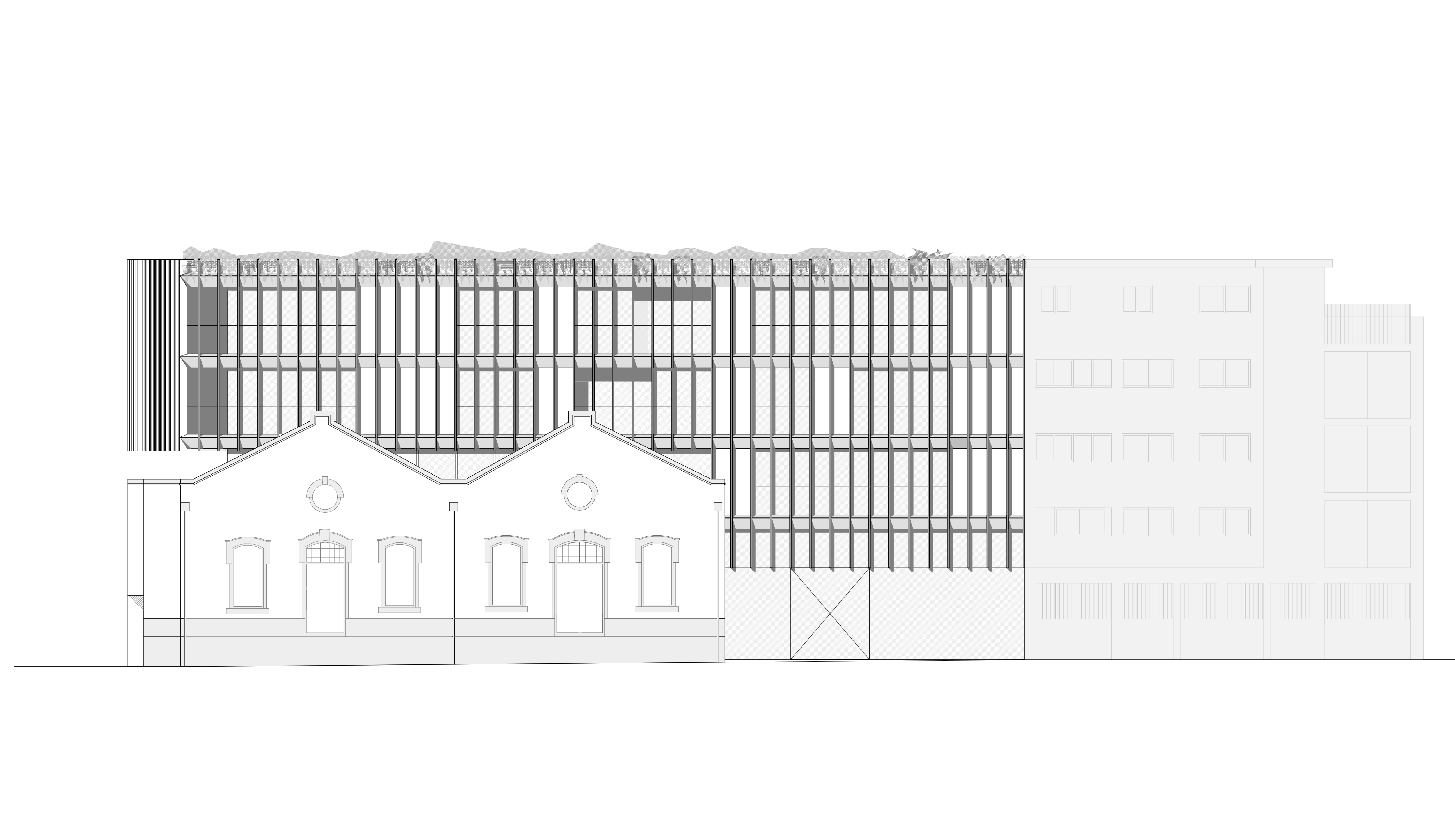 La intervención urbanística buscó integrar la propuesta en su contexto, respetando los alineamientos de las construcciones adyacentes y el desarrollo previsto del bloque urbano, manteniendo las fachadas existentes de los almacenes, consideradas ejemplos de la arquitectura industrial que caracterizaba los alrededores de la estación ferroviaria a principios del siglo pasado.
