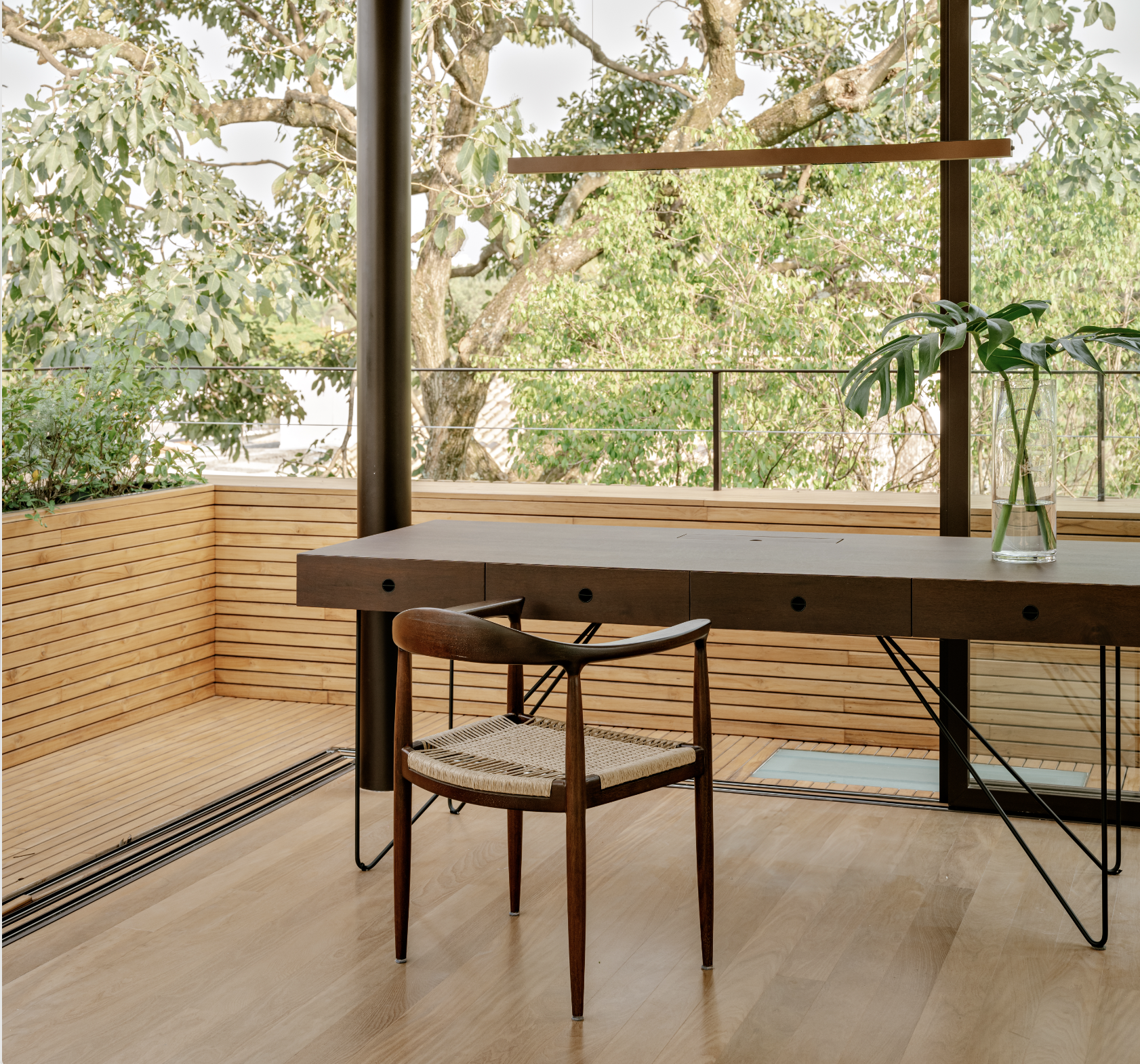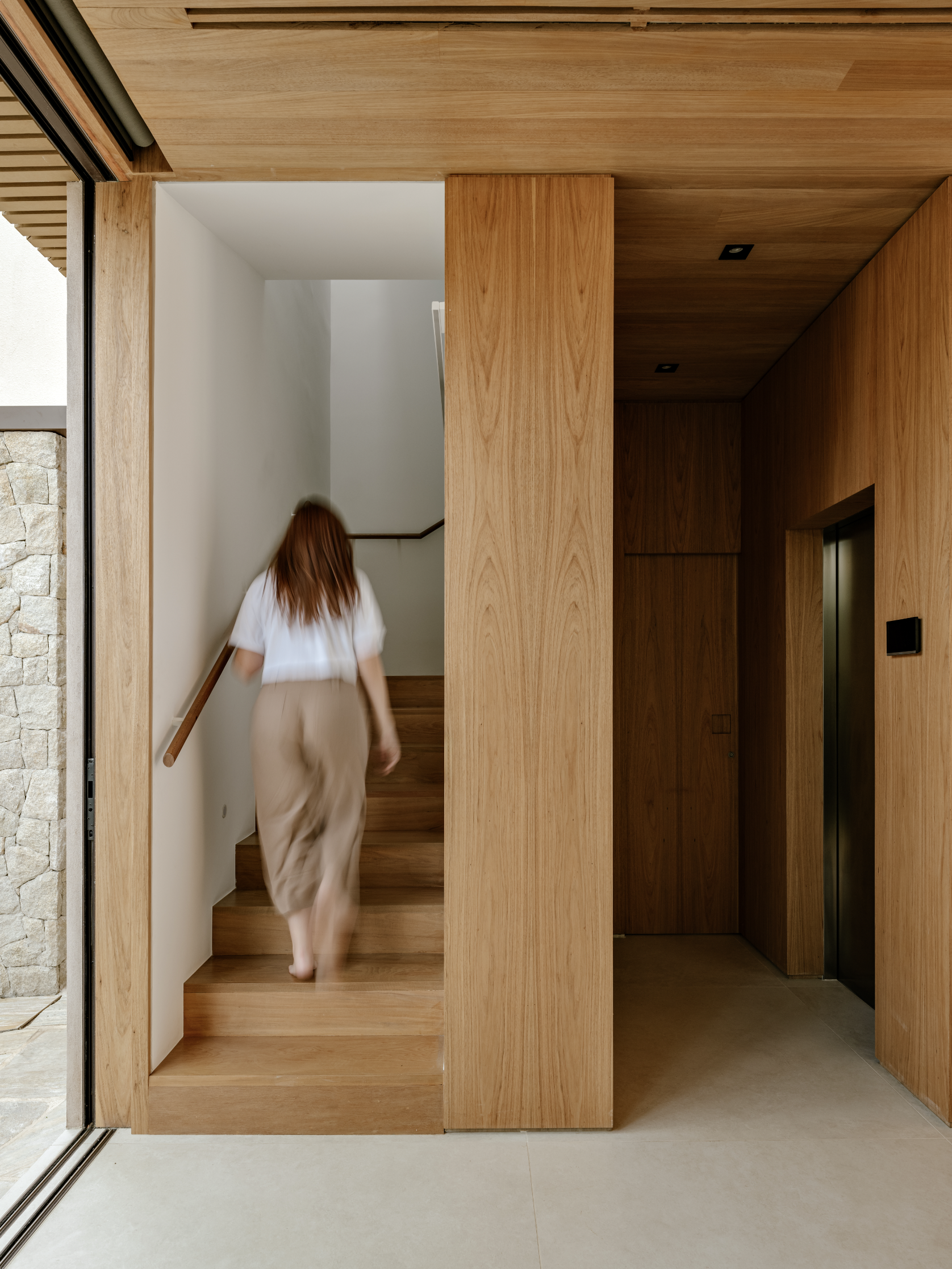 incorporaron desde la concepción del proyecto. Amplios pasillos y un ascensor garantizan la facilidad de movimiento vertical entre plantas, lo que permitirá a los propietarios disfrutar de la casa en su totalidad durante muchos años.