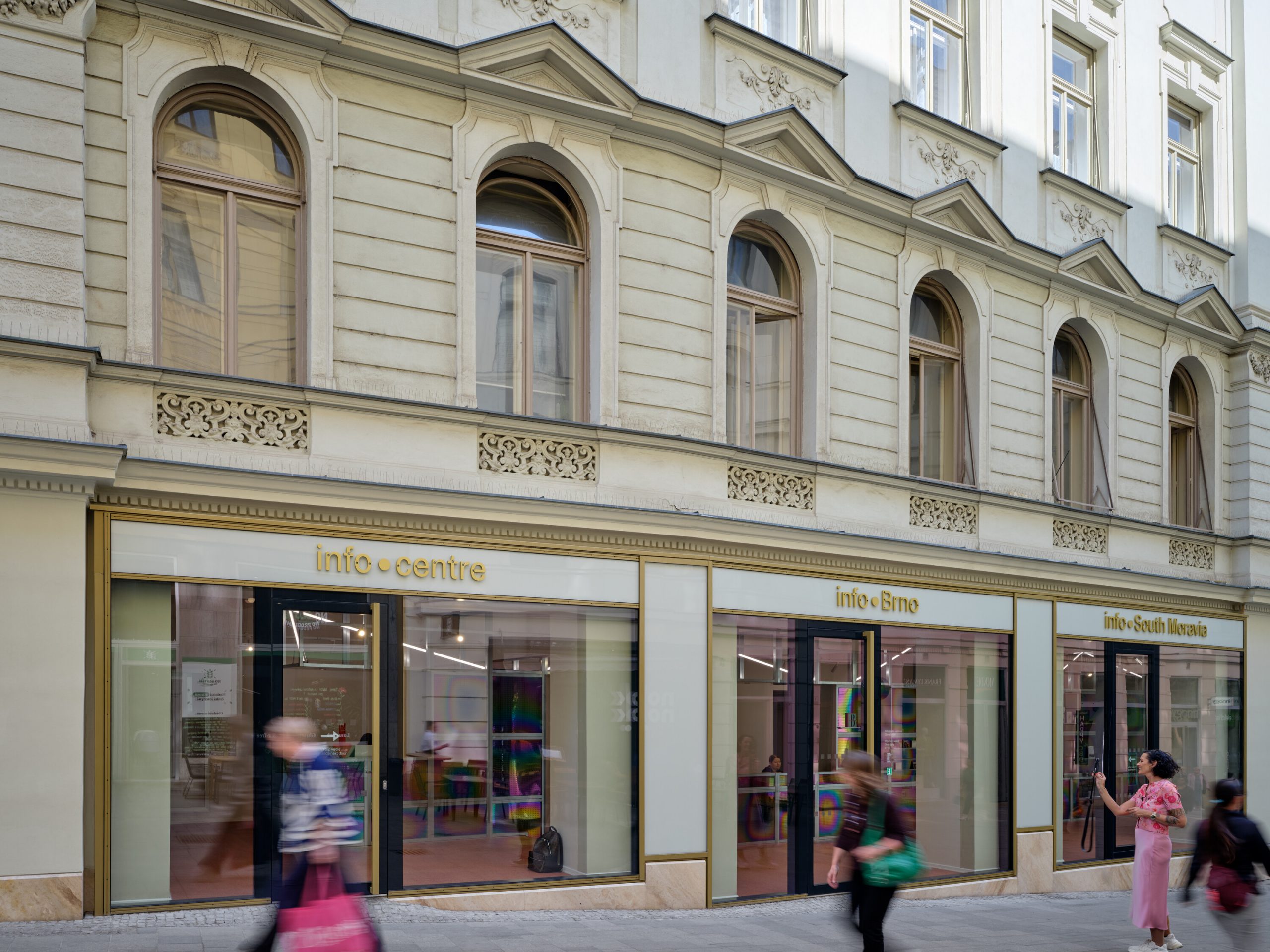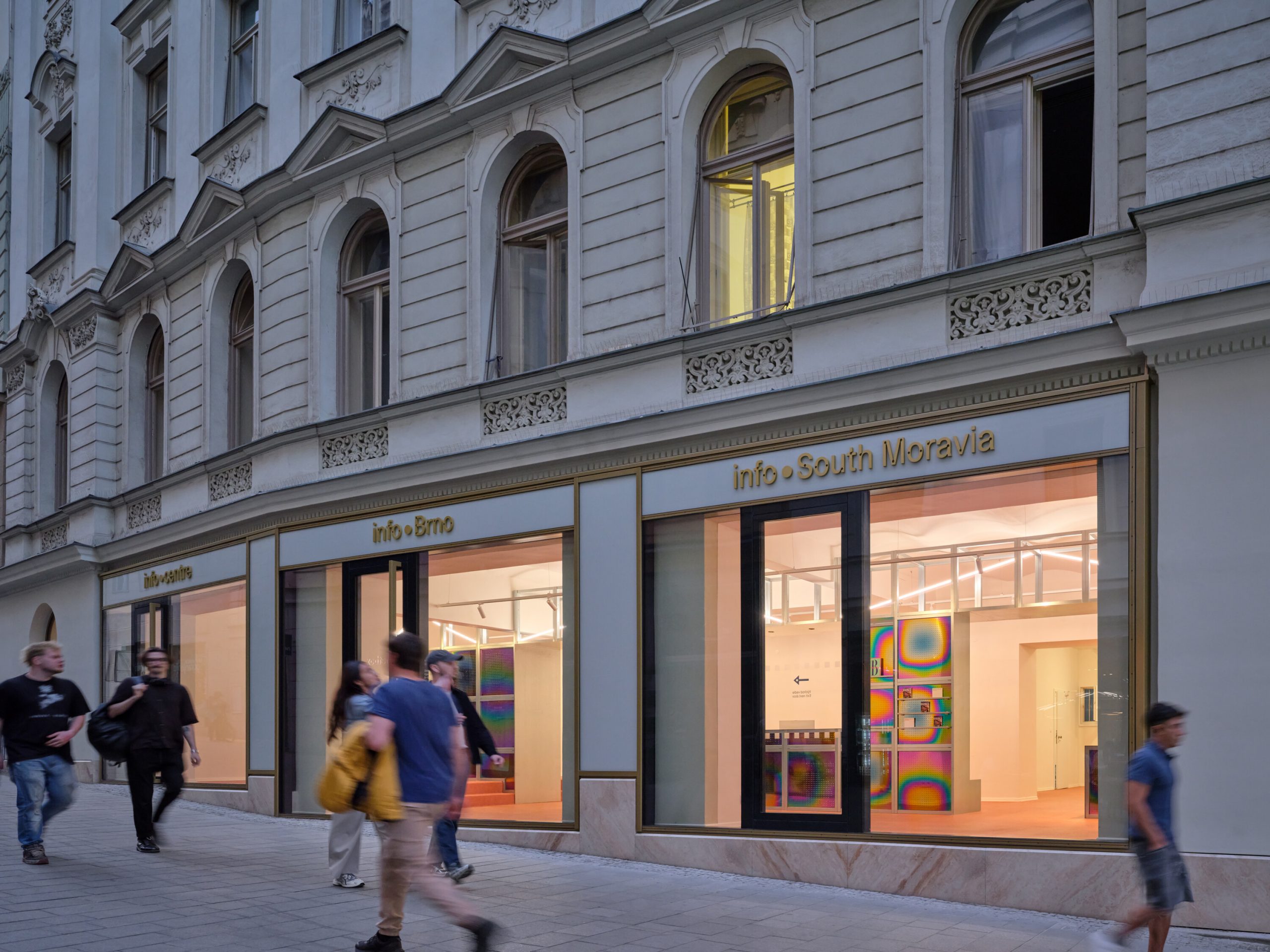Ubicado en la calle Zámečnická, una importante vía peatonal entre Náměstí Svobody y Dominikánské náměstí, el centro redefine la tipología de los centros de información turística como infraestructura cívica adaptable. Más que un punto de referencia, funciona como una interfaz cultural: alberga microexposiciones, exhibe productos locales y ofrece espacio para eventos y presentaciones más pequeños. Su contenido rotativo, seleccionado en colaboración con diseñadores e instituciones de Brno, permite que el espacio se adapte a la cambiante escena cultural de la ciudad.