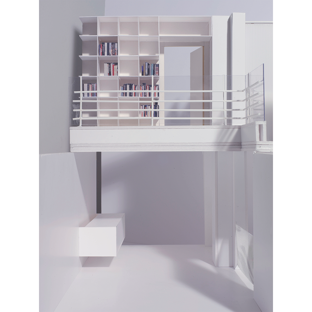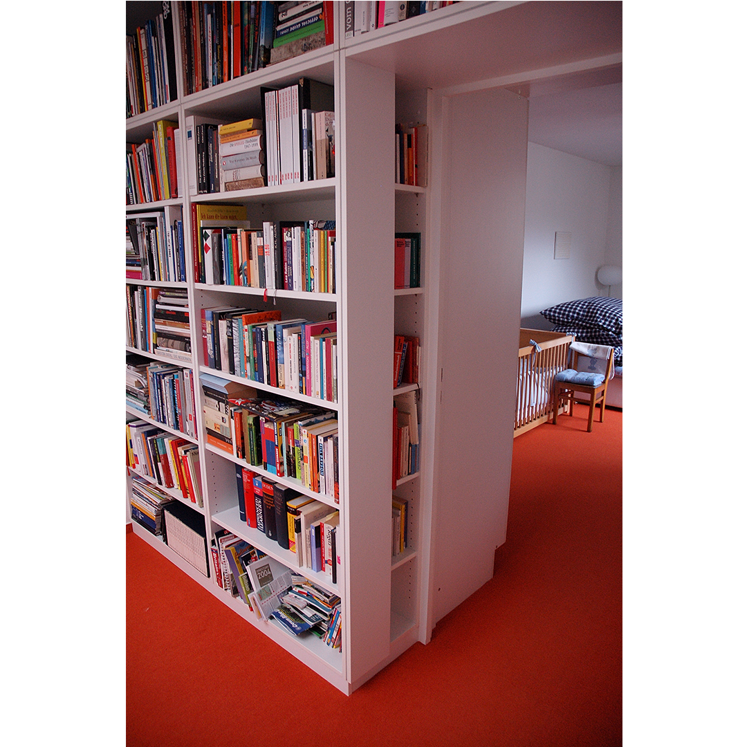 House B fue un proyecto de renovación de United Architektur que transformó el interior de una casa dúplex de 1960 ubicada en Hannover, Alemania. United Architektur vio valor en las características espaciales existentes y, por lo tanto, optó por preservarlas y renovarlas. Los clientes eran una familia joven y pidieron un programa que incorporara muebles nuevos, una biblioteca, una galería y mejoras para niños. El resultado fue una serie de intervenciones de diseño detalladas que se incorporan a la estructura y el espacio existentes con un impacto visual mínimo.