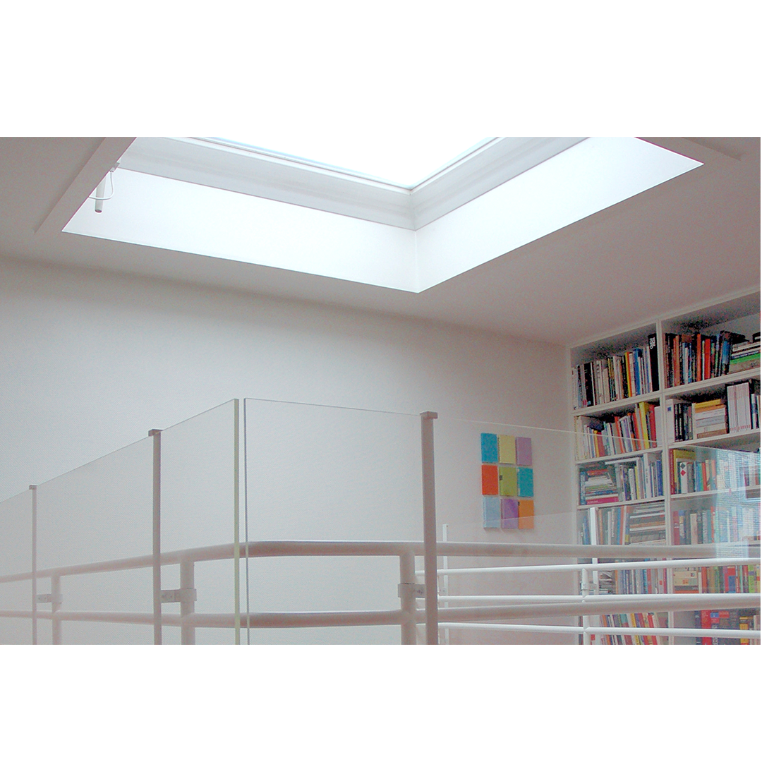 La transparencia espacial y la generosidad fueron los dos temas principales en la Casa B. El interior utiliza dos espacios de doble altura en el comedor y la sala de estar. Estos diversifican las vistas entre los niveles superior e inferior, así como el jardín. La alfombra naranja vibrante existente se conservó y todas las nuevas adiciones son en blanco para crear un contraste visual limpio.