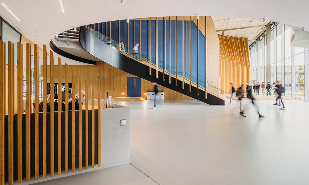 Echo es el nuevo edificio dedicado a la enseñanza de varias facultades diseñado por el estudio de arquitectura UNStudio para la TU Delft, la mayor y más antigua universidad técnica de los Países Bajos. La nueva construcción no solo amplía la oferta de aulas, suplementarias y flexibles, que se adaptan a los diferentes métodos de enseñanza y estudio de profesores y estudiantes, sino que contribuye al logro de un hito ambicioso. En 2030 la TU Delft aspira a convertirse en un campus completamente sostenibley Echo es un edificio con un balance energético negativo, o sea que produce una cantidad de energía mayor a la necesaria para su autonomía y requerimientos diarios, incluyendo la energía necesaria para la realización de las actividades didácticas y, por lo tanto, de los ordenadores portátiles de los usuarios. Una característica que hace del proyecto desarrollado por UNStudio, en colaboración con Arup y BBN, «un buen ejemplo práctico». Así, no es solo un edificio en que aprender, sino un edificio del que aprender. Una construcción realizada adoptando principios de circularidad con la reutilización de muebles o el empleo de elementos de construcción fácilmente reutilizables al final del ciclo de vida del edificio. Además, Echo está equipado con un sistema de 1.200 paneles solares, un sistema de acumulación de calor/frío. Junto con los sistemas inteligentes (smart) para la gestión del edificio, los arquitectos han adoptado soluciones de diseño que han permitido lograr este ambicioso objetivo, al tiempo que garantizan un estilo de vida saludable tanto a nivel físico como psicológico y social.