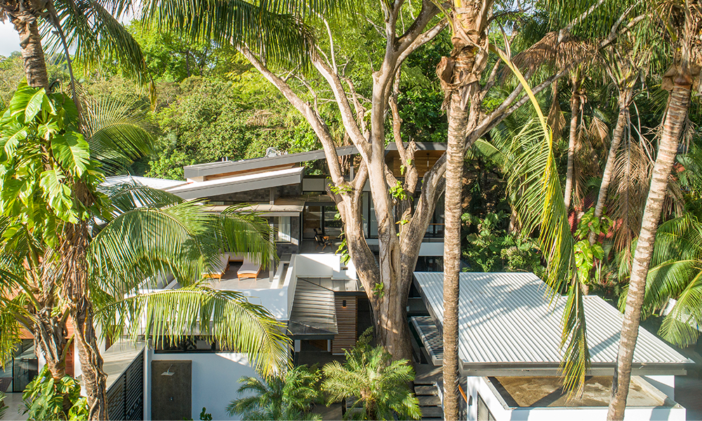 Estamos encantados de compartir con ustedes nuestra última residencia “Casa Besos” en Nosara, Guanacaste, Costa Rica. Nuestro estudio decidió crear la casa alrededor de un hermoso árbol de Guanacaste en el centro del lote. Empezamos generando aperturas y espacios de alta permeabilidad para disfrutar de este elemento central desde cada uno de los diferentes espacios de la casa. Los dormitorios y las salas de estar se colocaron de lado para hacer frente a las vistas prominentes. Este gran desafío partió de la remodelación de una casa antigua, pero luego de analizarla concluimos que no sería concebible integrar cada uno de los espacios existentes a este hermoso eje central. Convencimos al cliente para generar un nuevo proyecto en el que los espacios de la casa se integraran de manera directa con el árbol.
