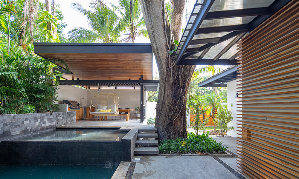 una casa alrededor de un hermoso árbol de Guanacaste en el centro del lote para acercar a las personas a la naturaleza, mientras se atienden sus necesidades diarias. Empezamos generando aperturas y espacios de alta permeabilidad para disfrutar de este elemento central desde cada uno de los diferentes espacios de la casa”.